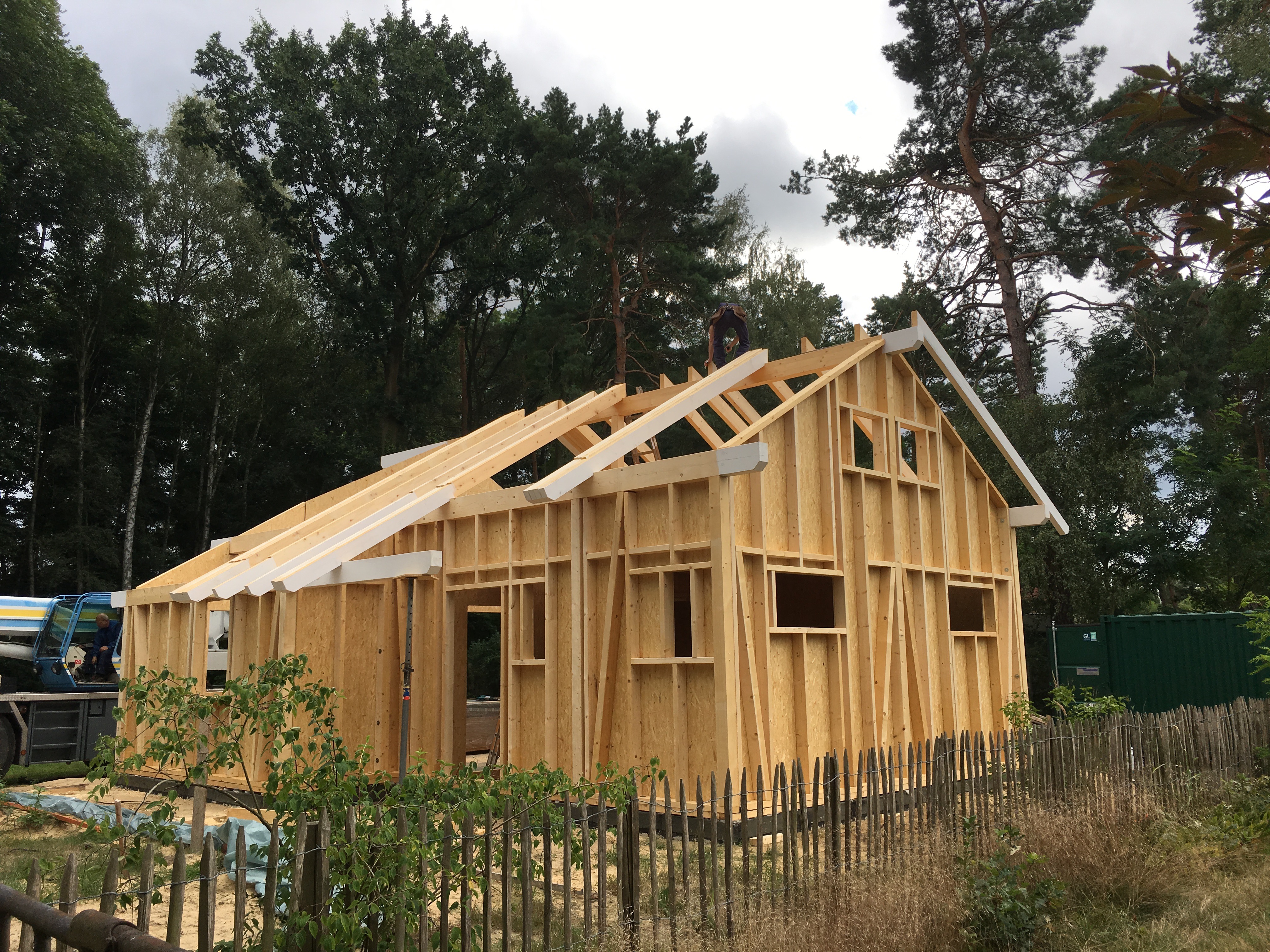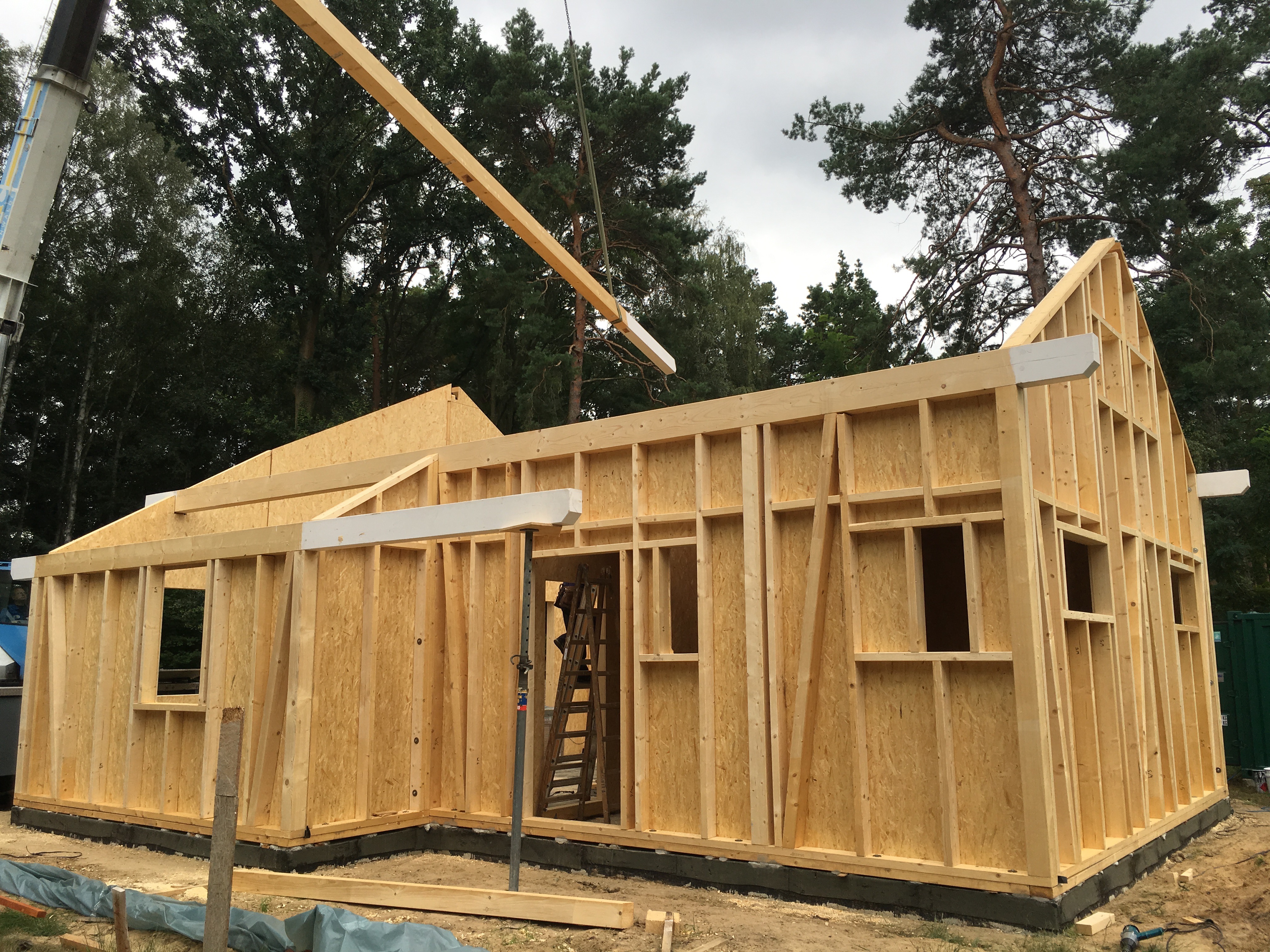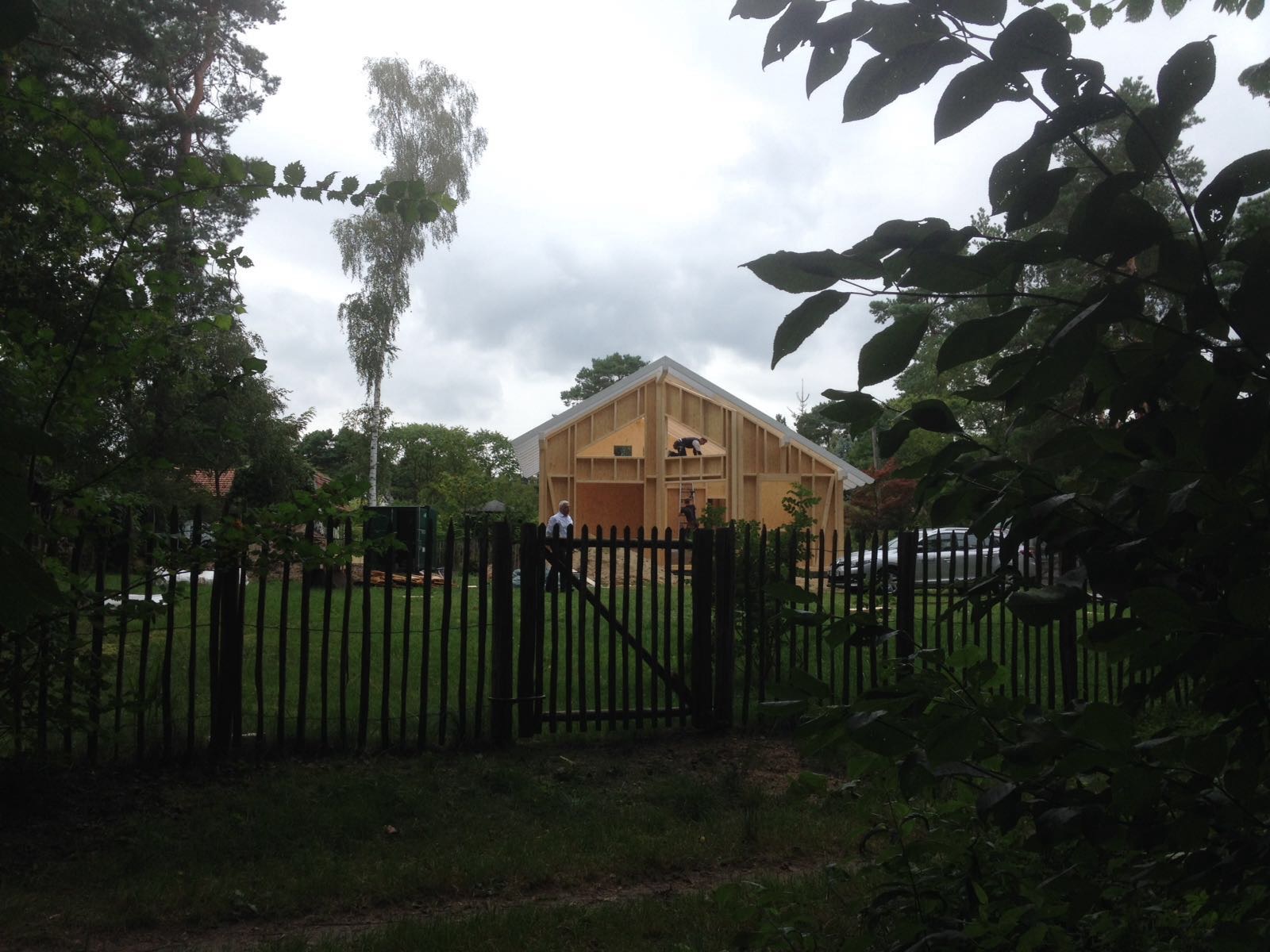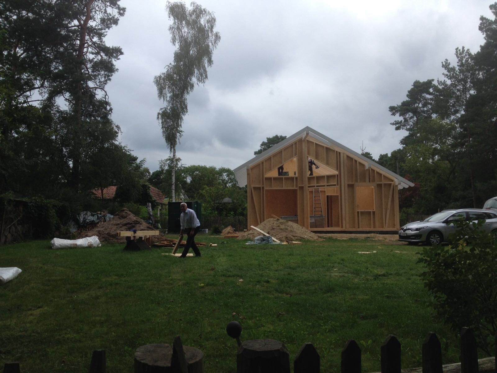 Ich bin so gegen 13:30 vom Büro direkt nach Bestensee gefahren. Schon als ich in die Straße eingebogen bin, konnte ich den Kran sehen…die Spannung stieg…und da stand ein Haus !!!