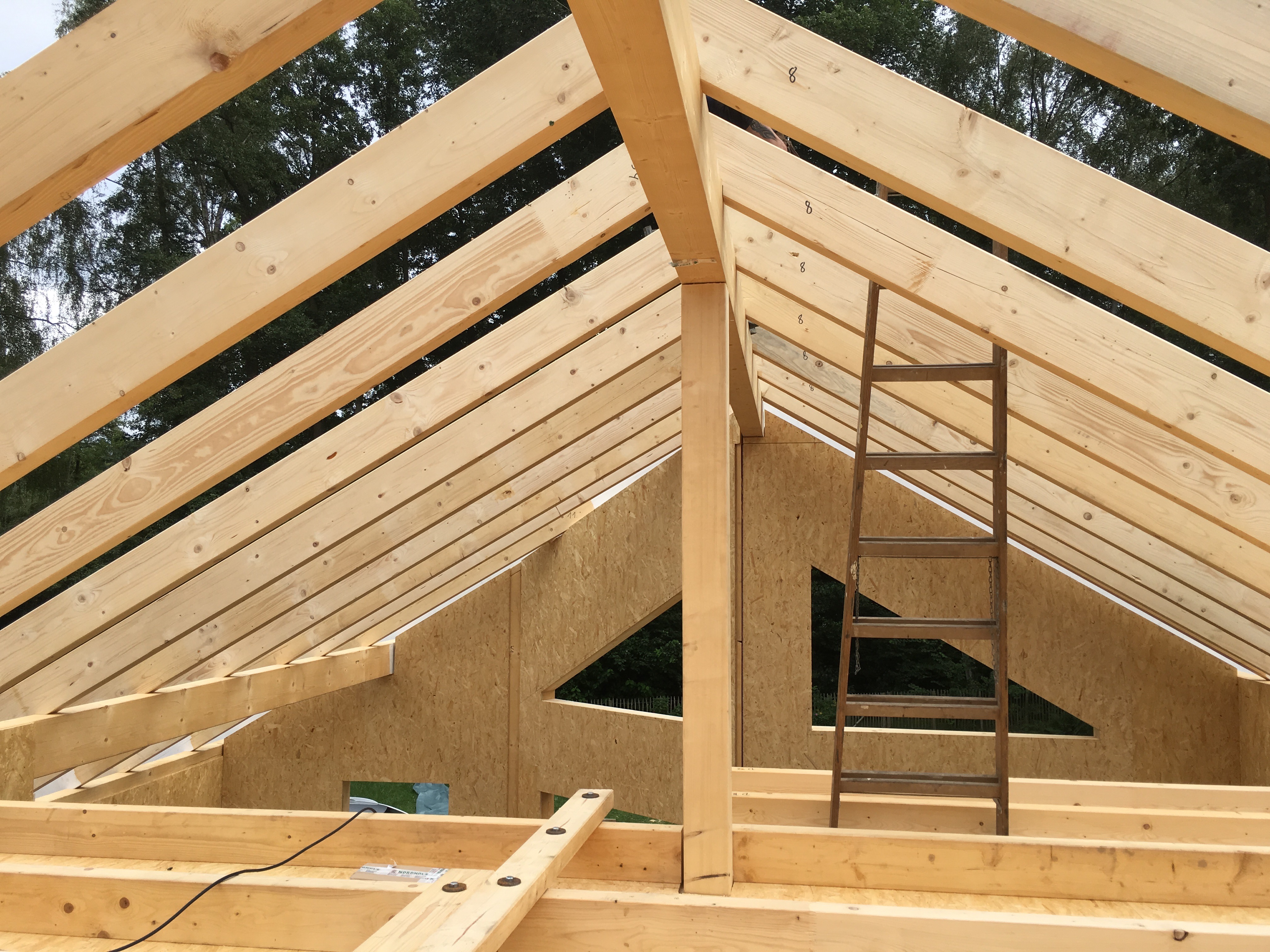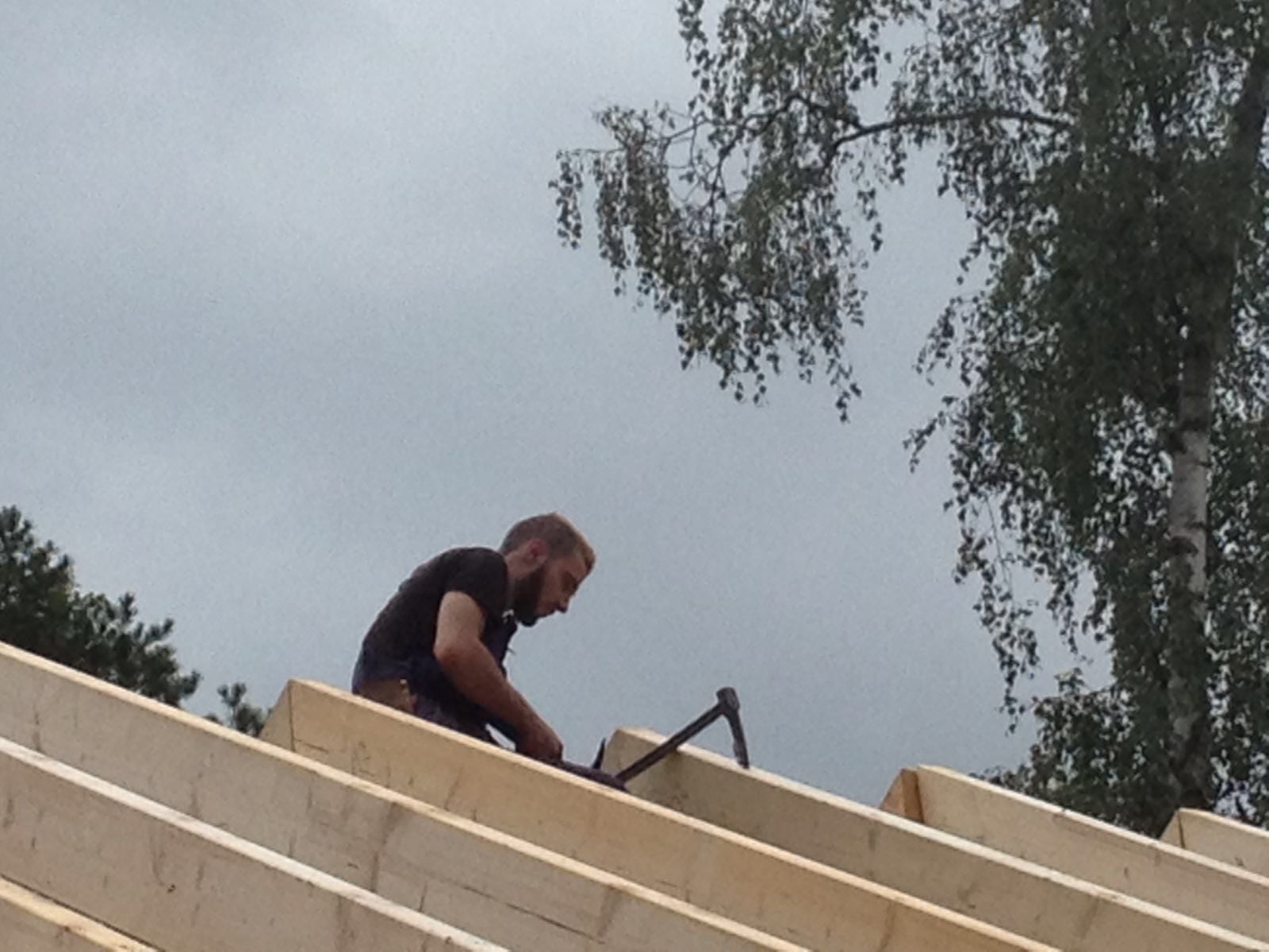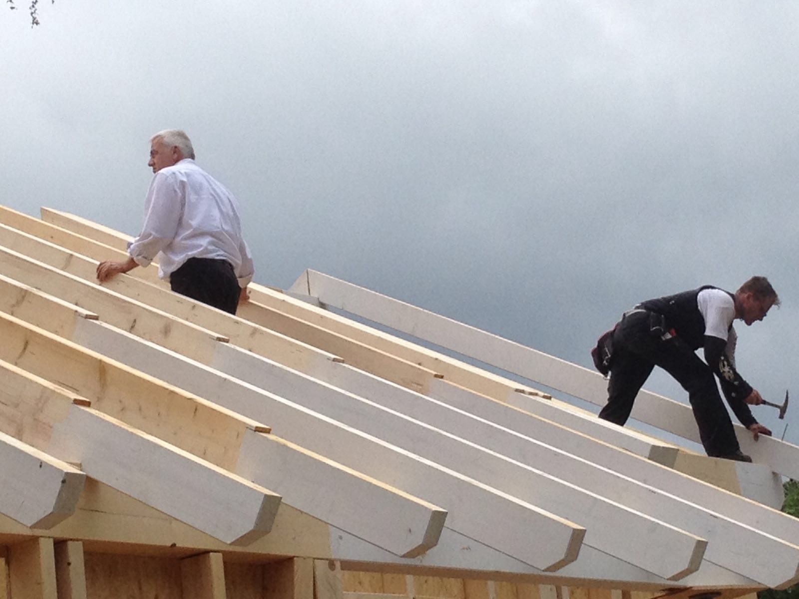 Holzbau Stich hat gerade mal ab 7:30 mit den Kranarbeiten angefangen und gegen 17:00 Uhr war der letzte Nagel für heute eingeschlagen….Stich ist der Hammer in Person 🙂