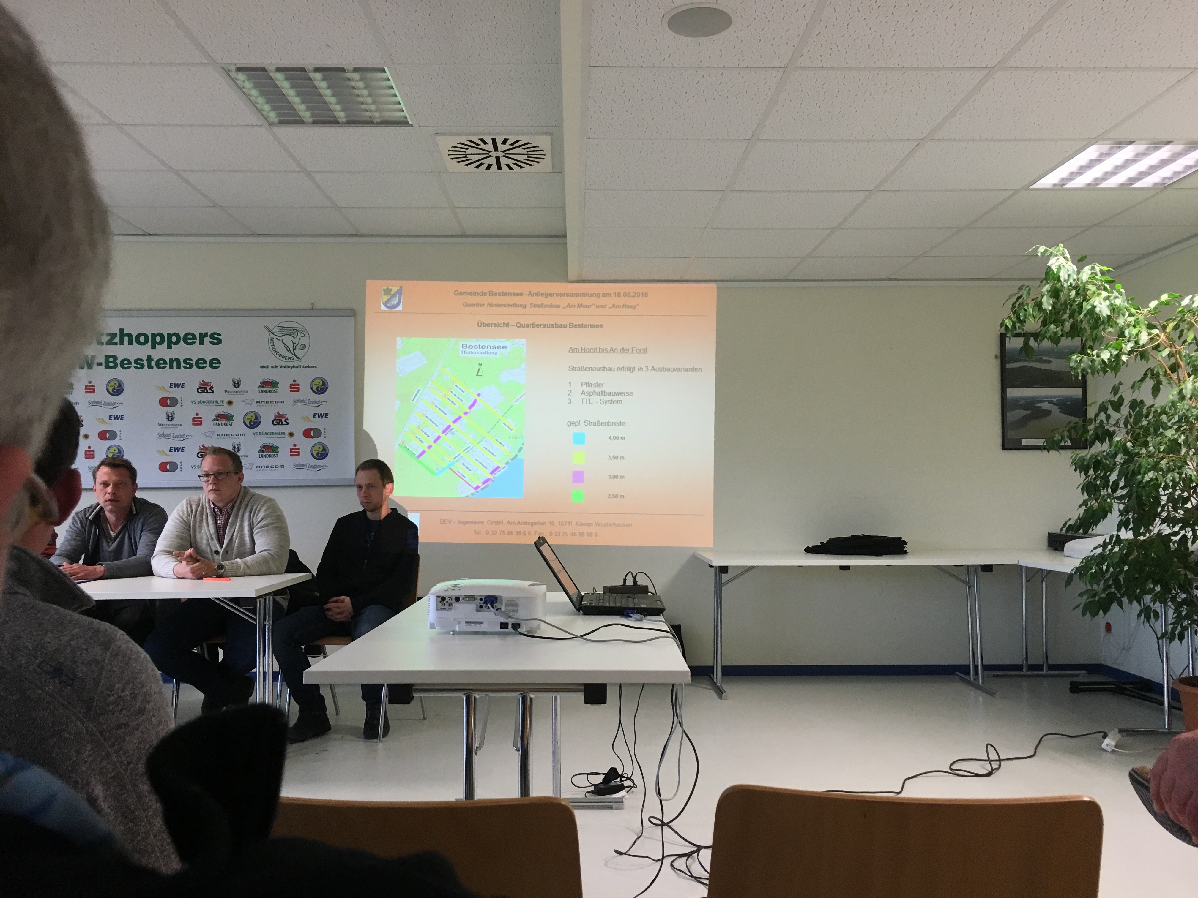 Bürgeranhörung zur Information über den Straßenausbau…der junge Mann mit dem roten Pullover ist im Übrigen der Bürgermeister