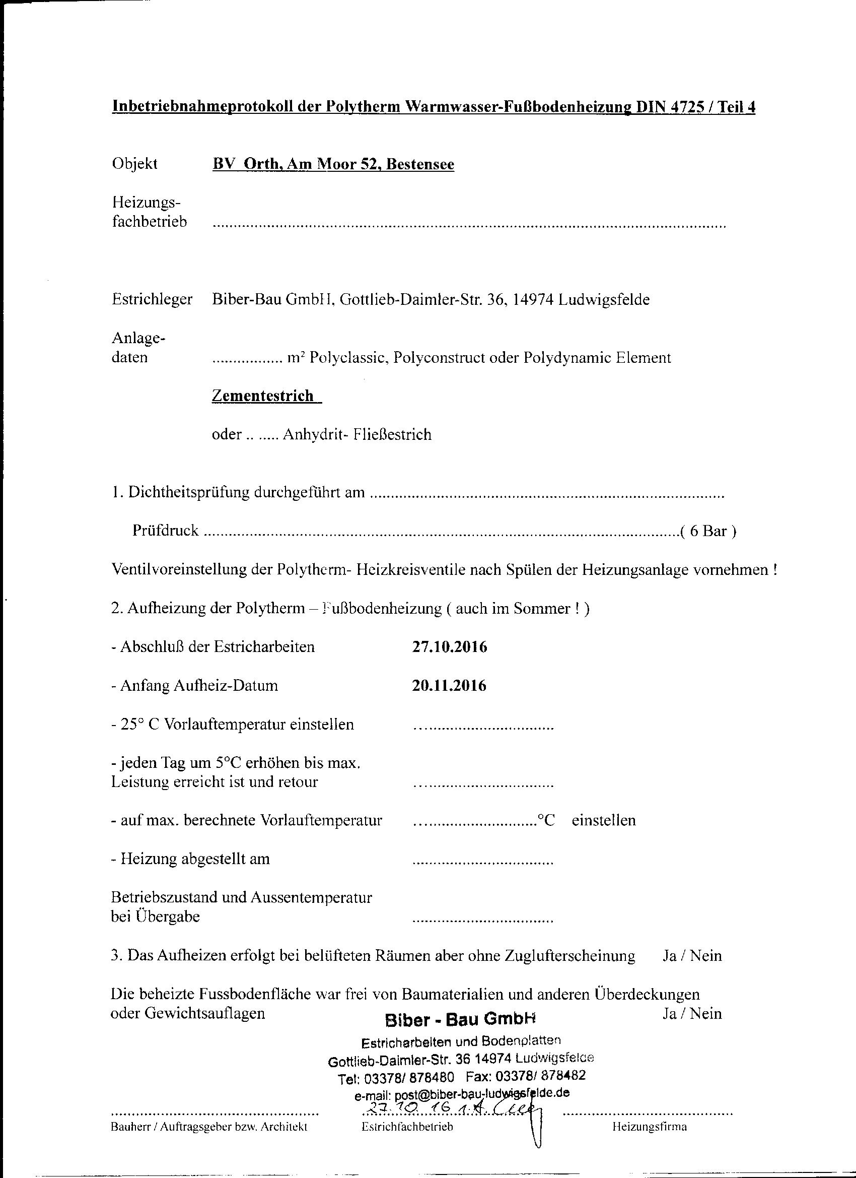 Ja, vor dem 20.11. darf die Heizung nicht hochgefahren werden…und dann nach einem bestimmten Programm…habe heute mit Fa. Adermann vereinbart, dass wir das Programm bis Mitte Januar durchlaufen lassen um die Feuchtigkeit aus dem Haus zu bekommen.