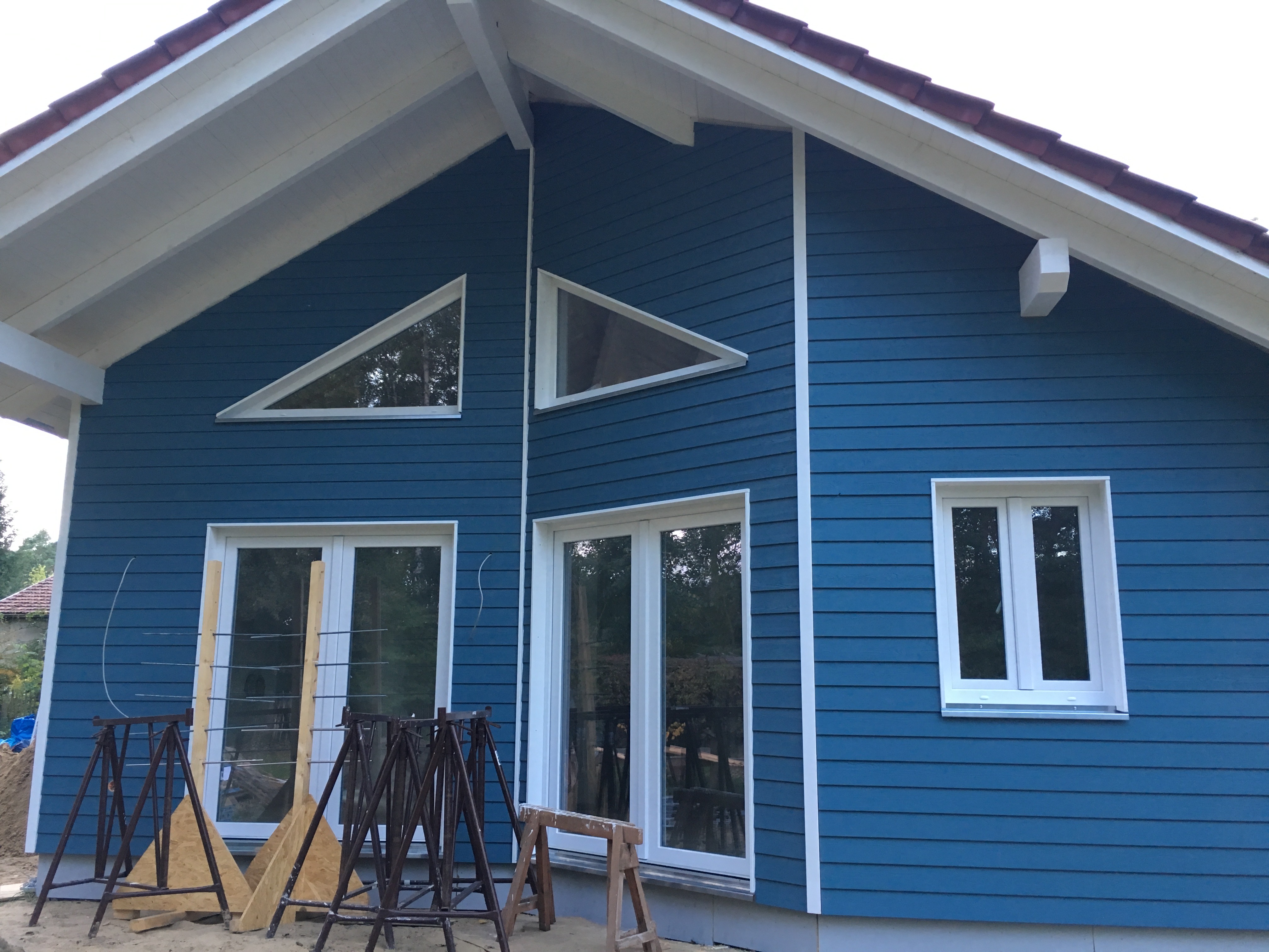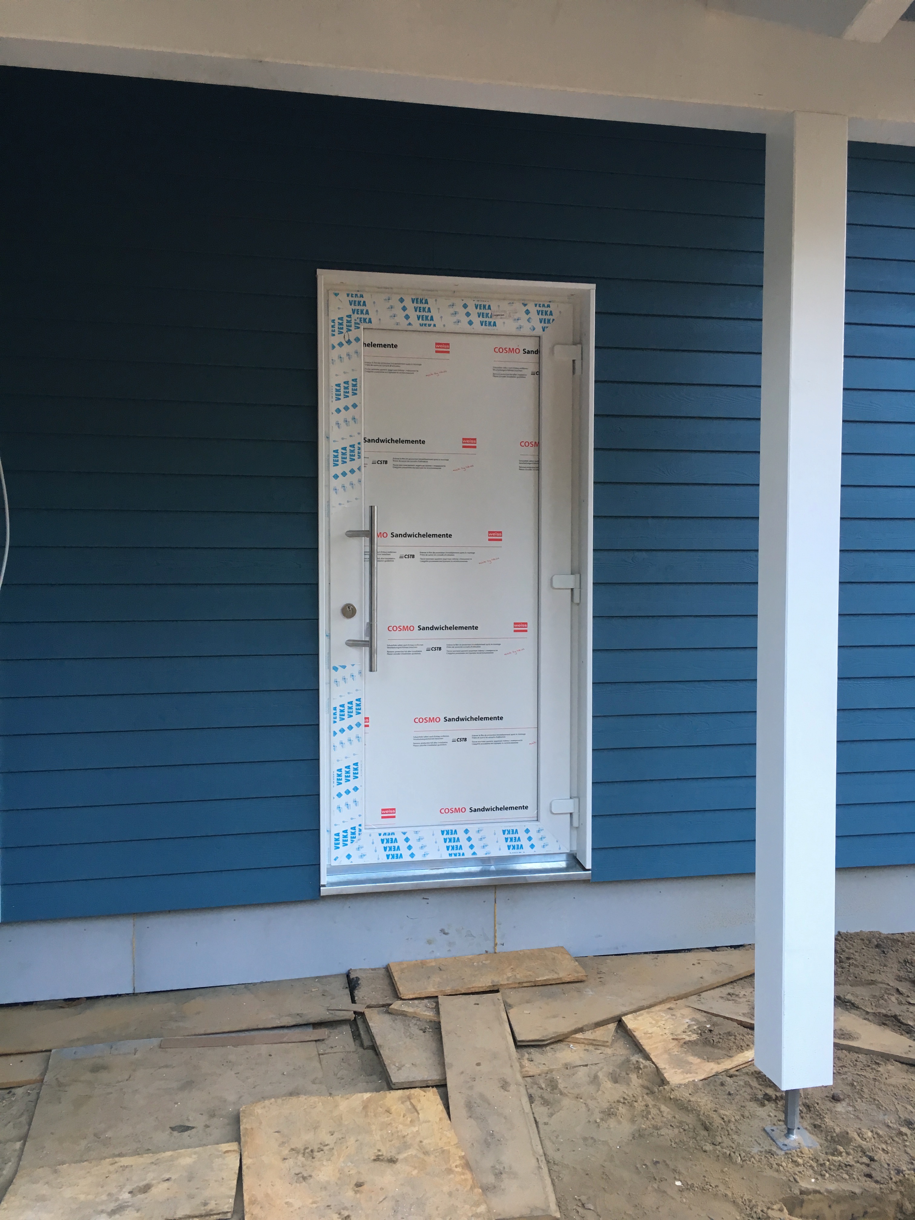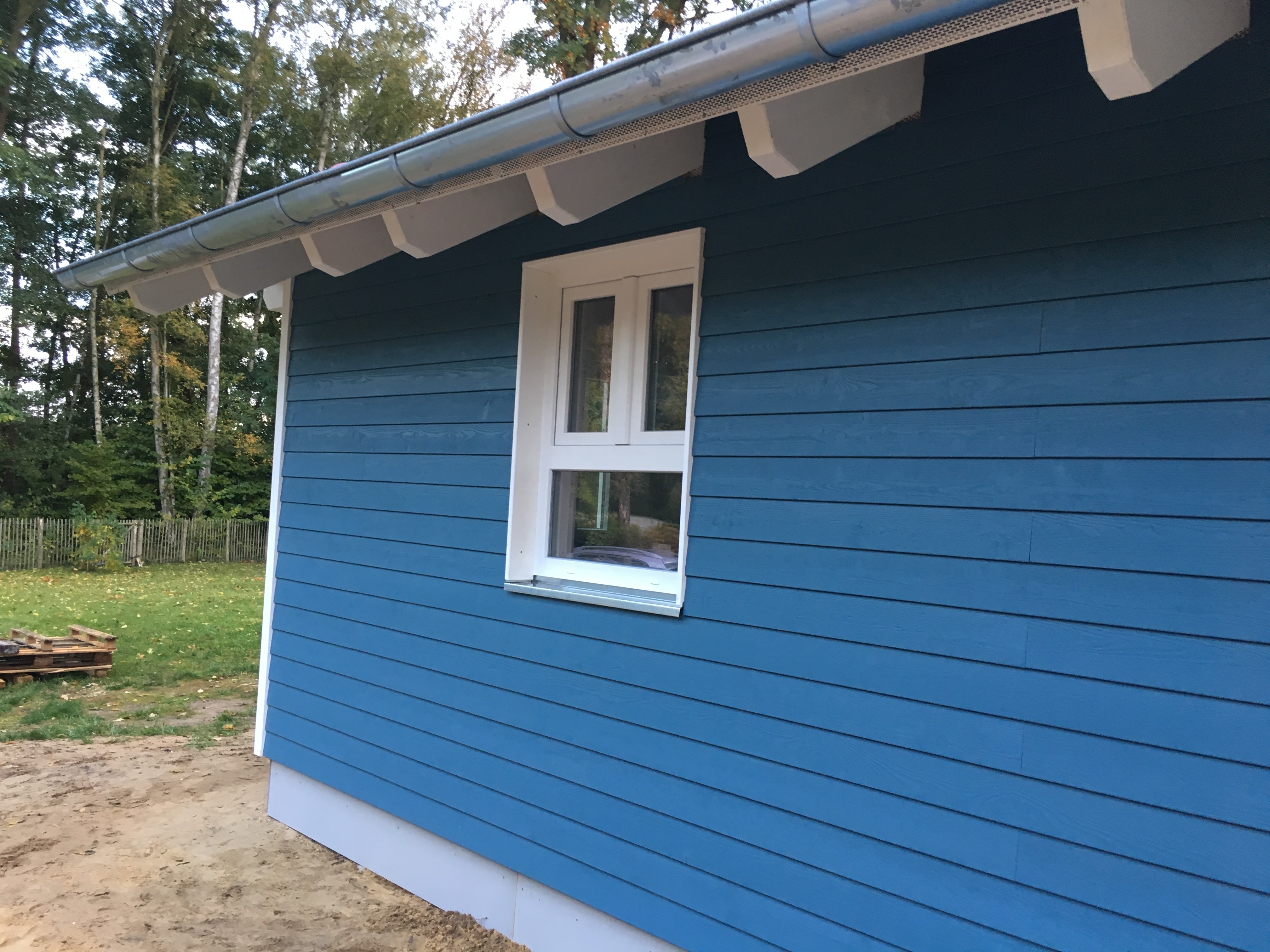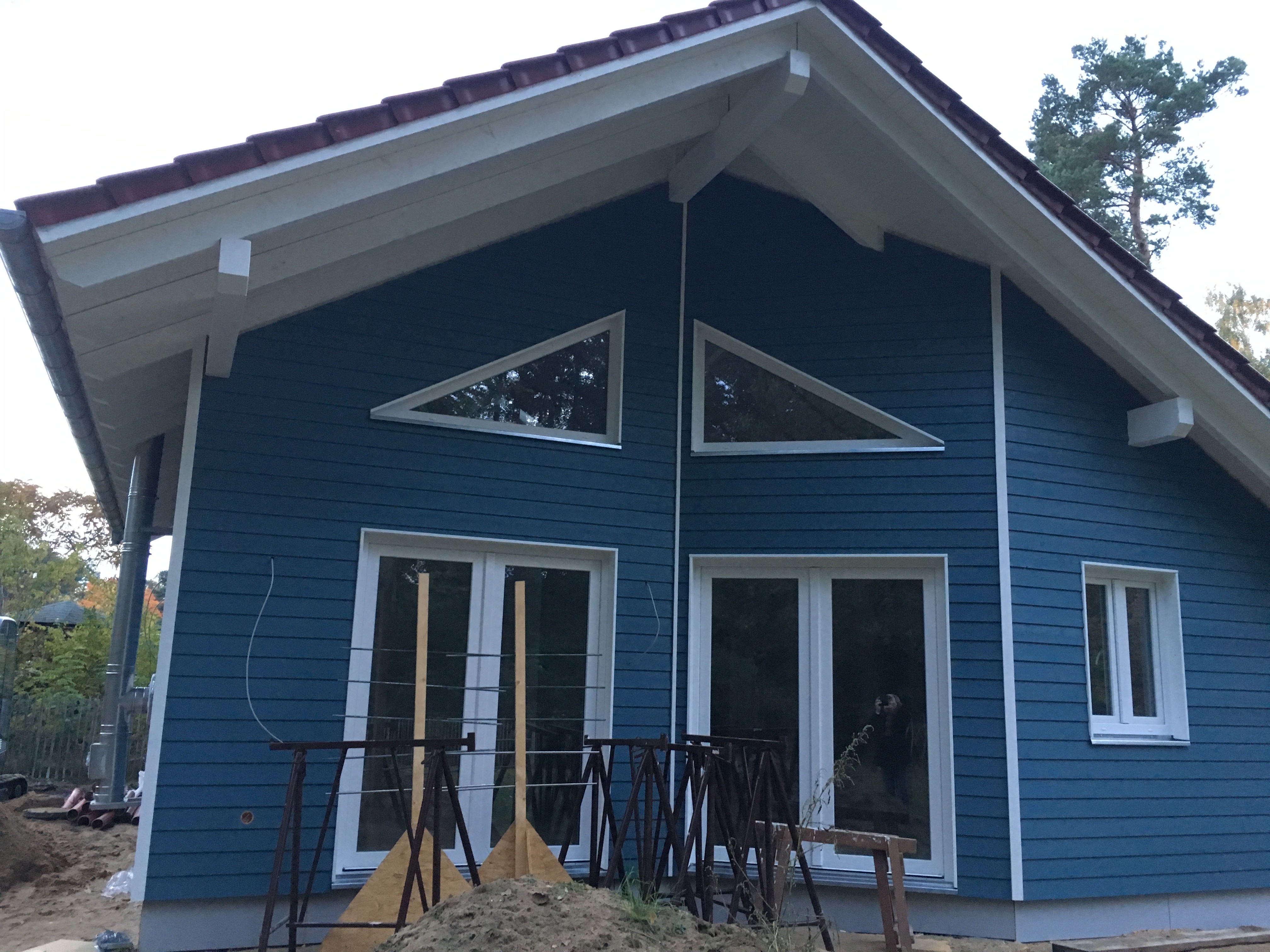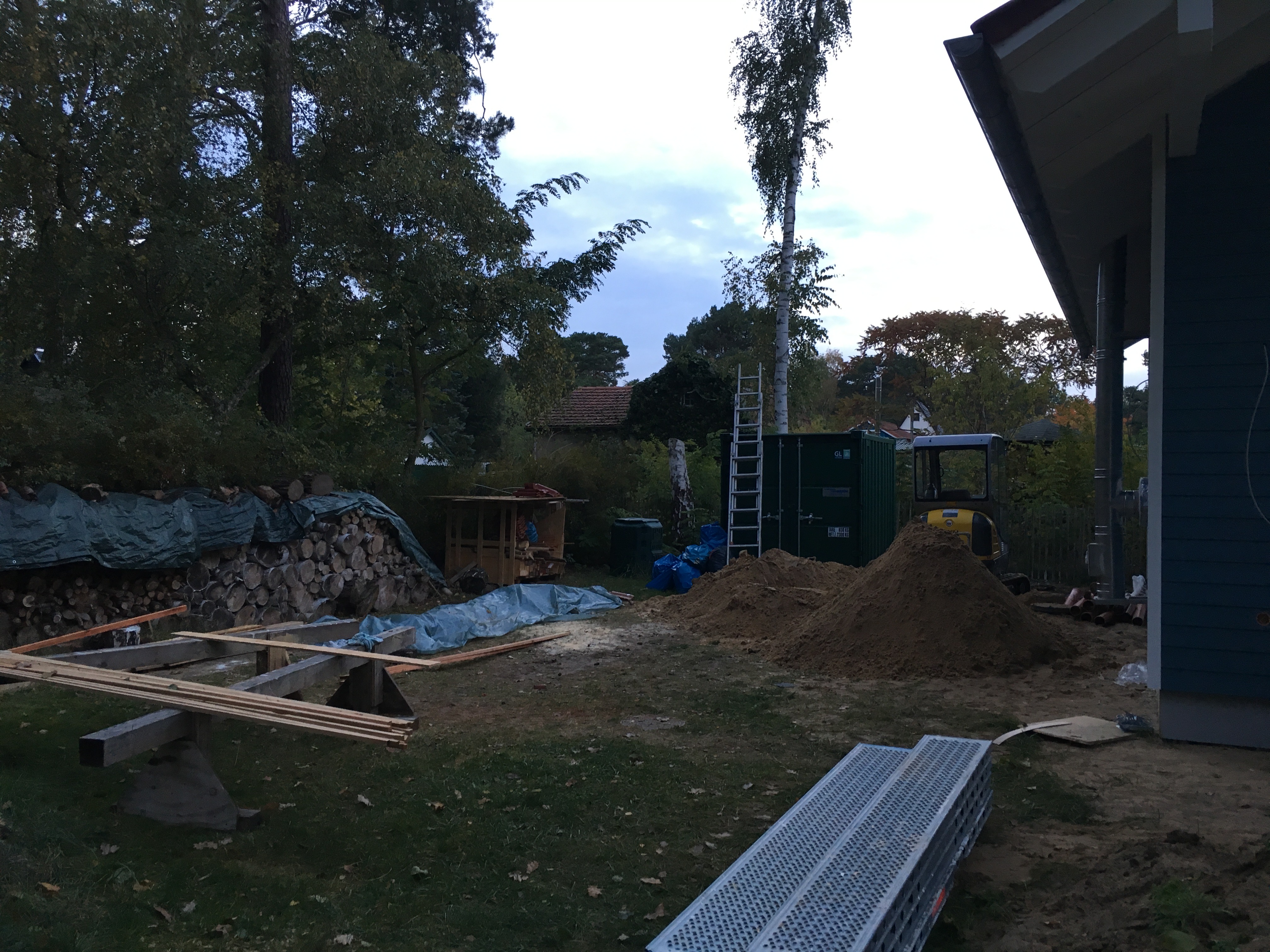 Heute war Großeinsatz ! Fa. Kammin ist endlich da und macht die Dachdurchführung des Schornsteins – Heiko 1 war da und hat mit seinem Kollegen alle Fenster und Türensimse gebaut und der Kanalbauer war da um den Kanalschacht zu setzen und die Abwasserleitungen anzuschliessen ….und da tauchten noch die Straßenbauer auf und wollten anfangen…was schwerlich ging, da die ganze Straße mit Handwerkerautos zugeparkt war….
