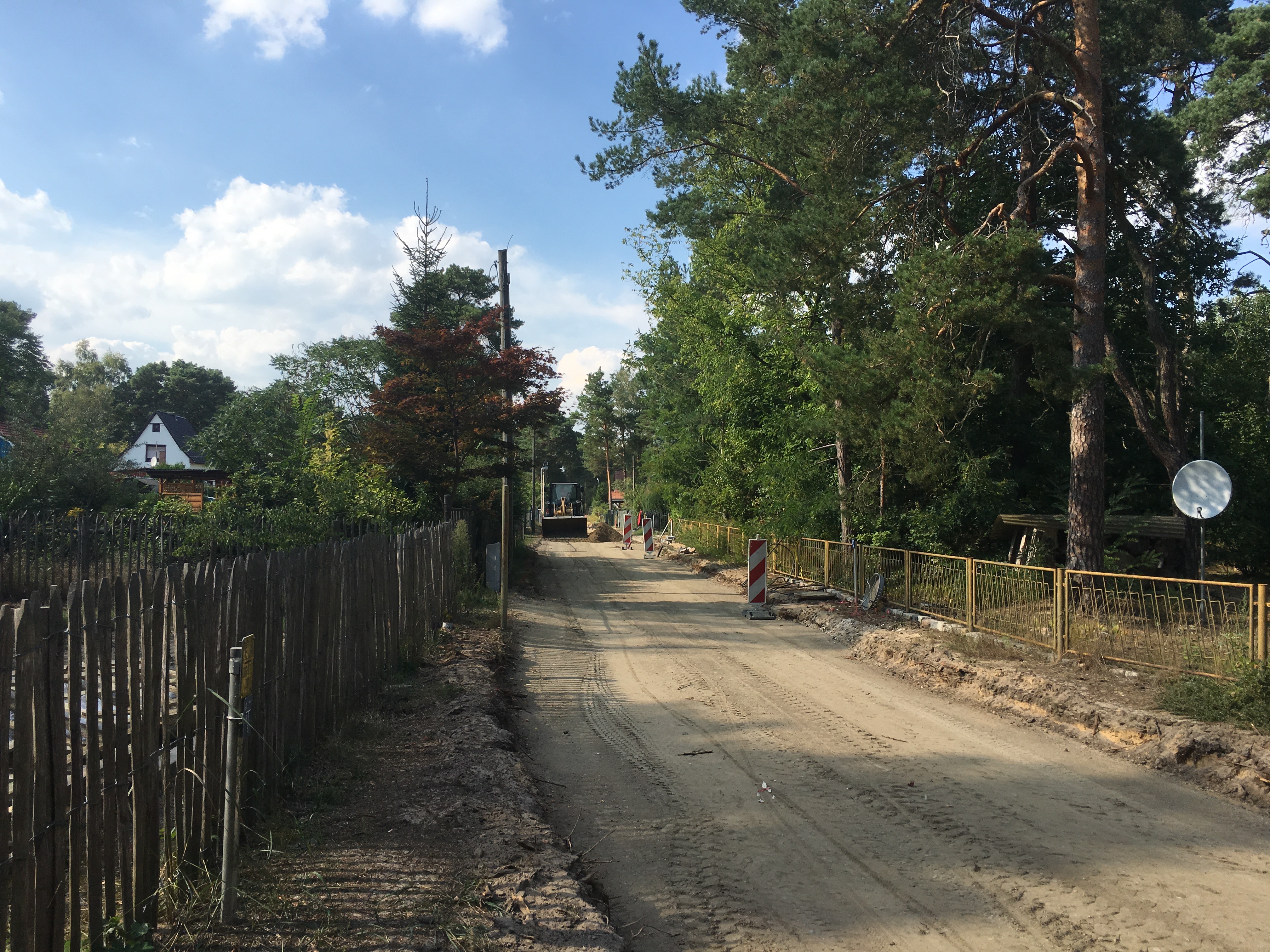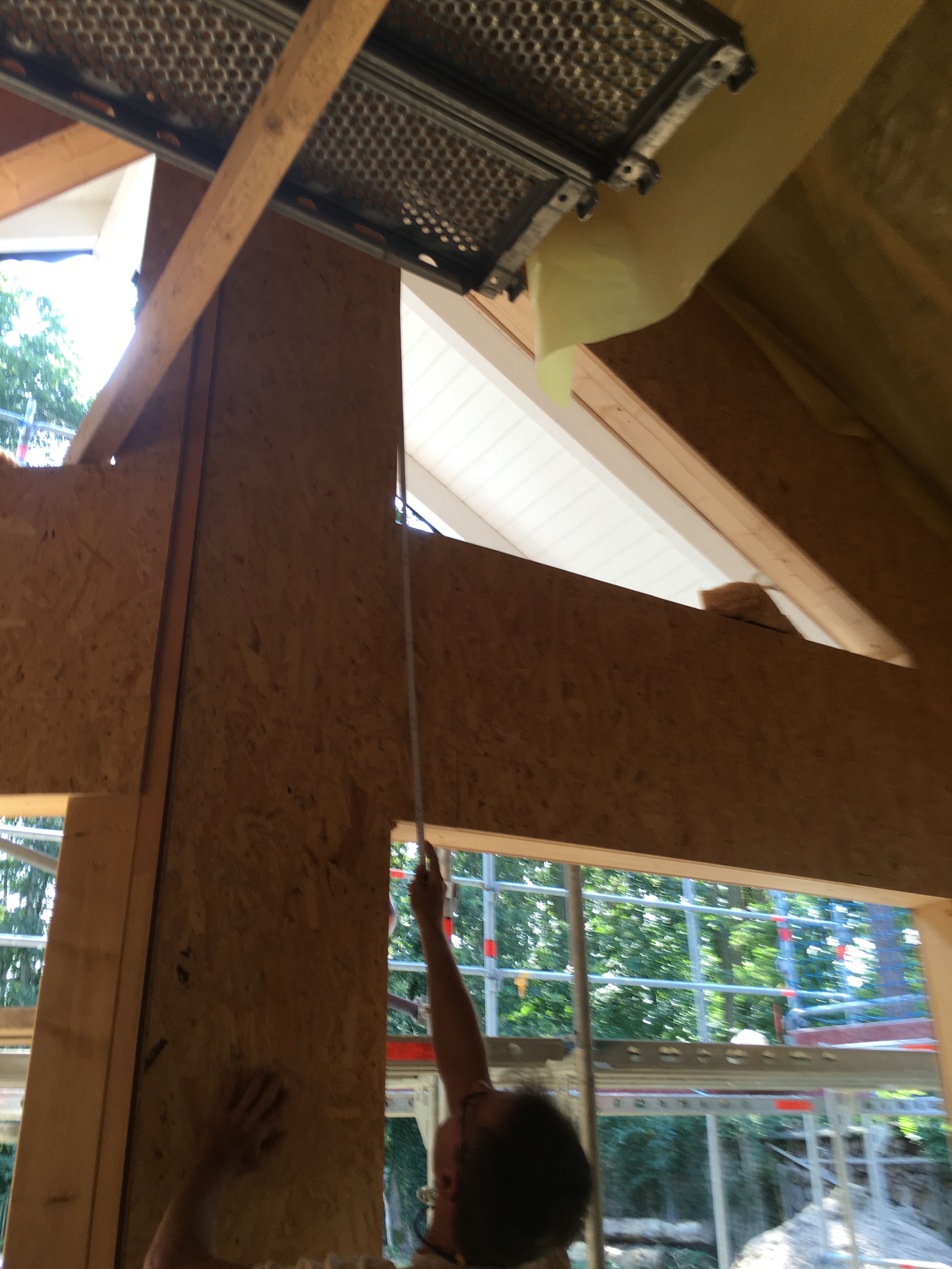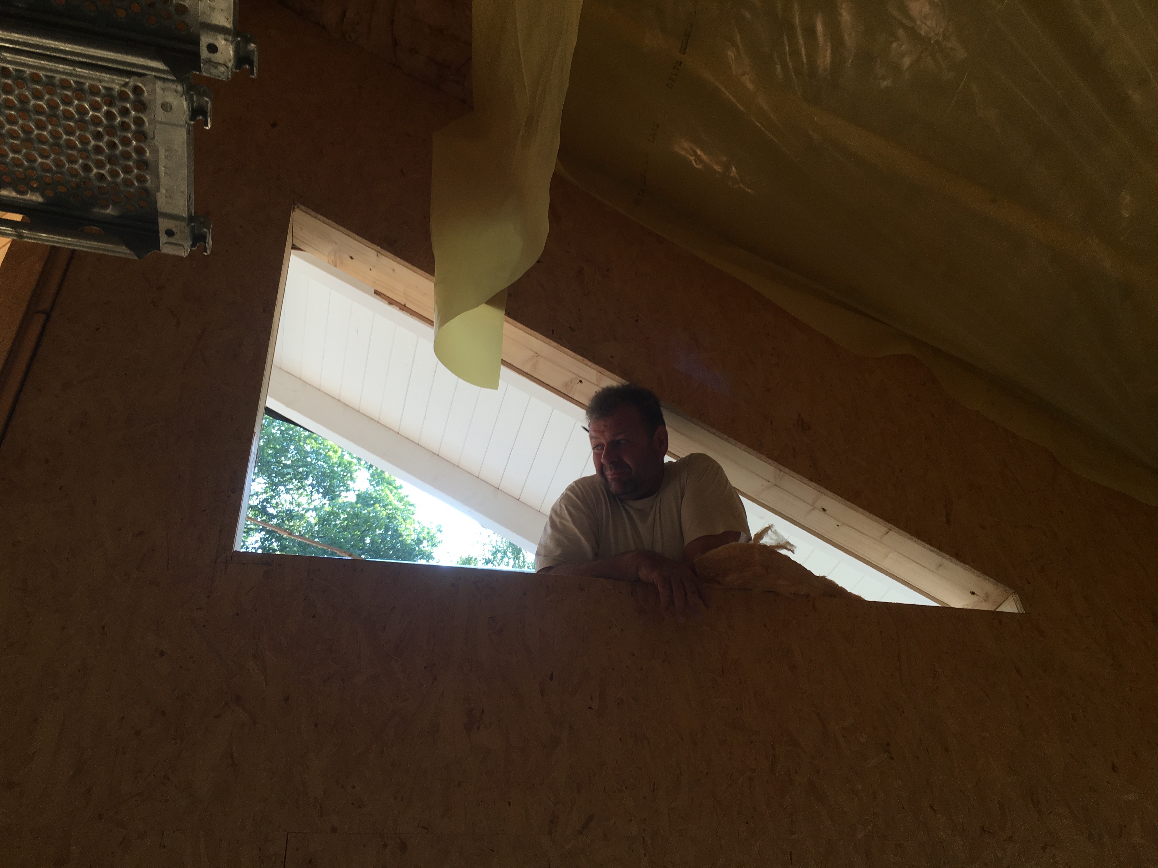 Wie gesagt der Straßenbau hat begonnen…und Herr Stich hat sich nach der Baubesprechung mit der Isolierung des Dachstuhls abgemüht…was für eine harte Arbeit
