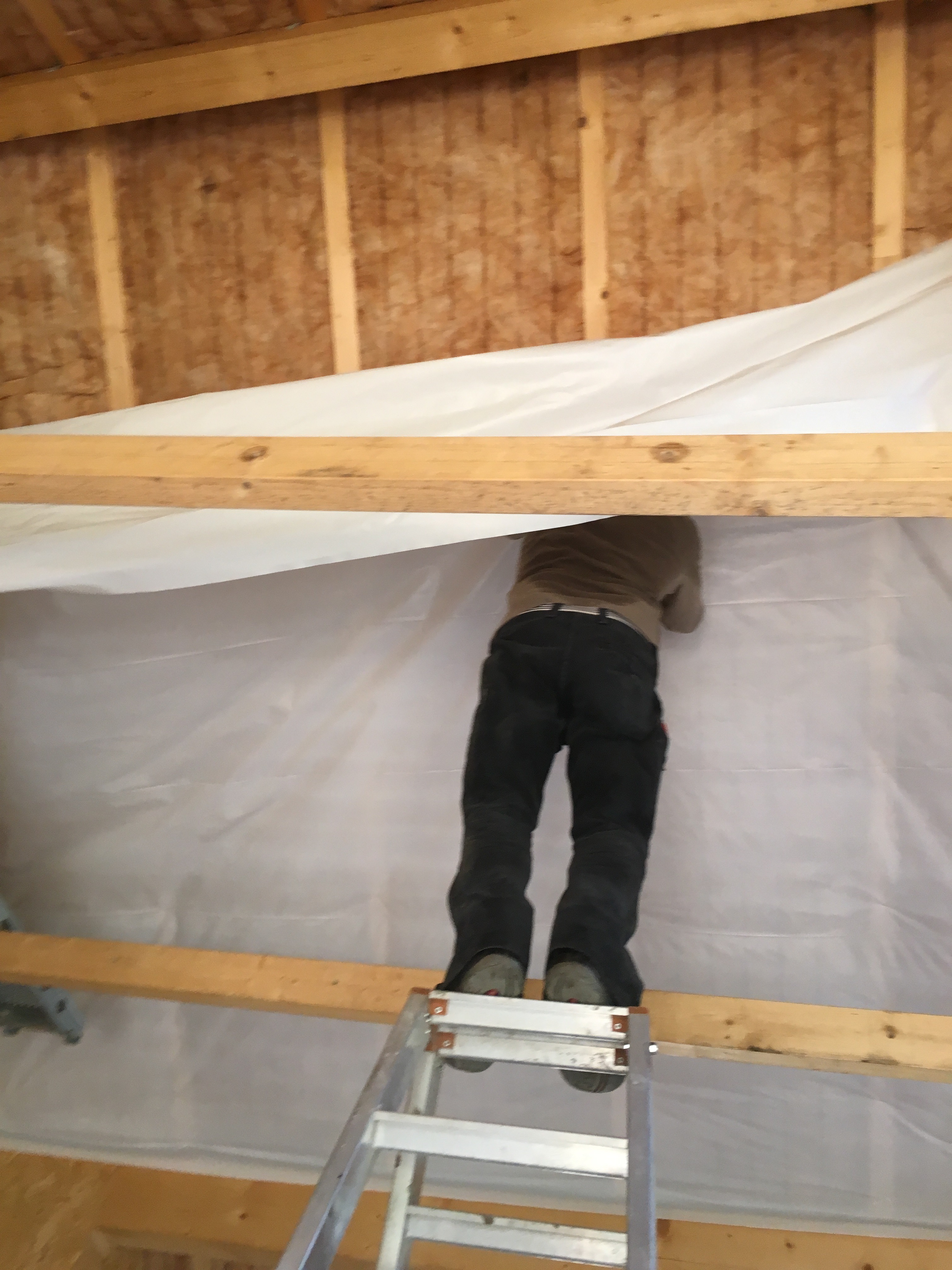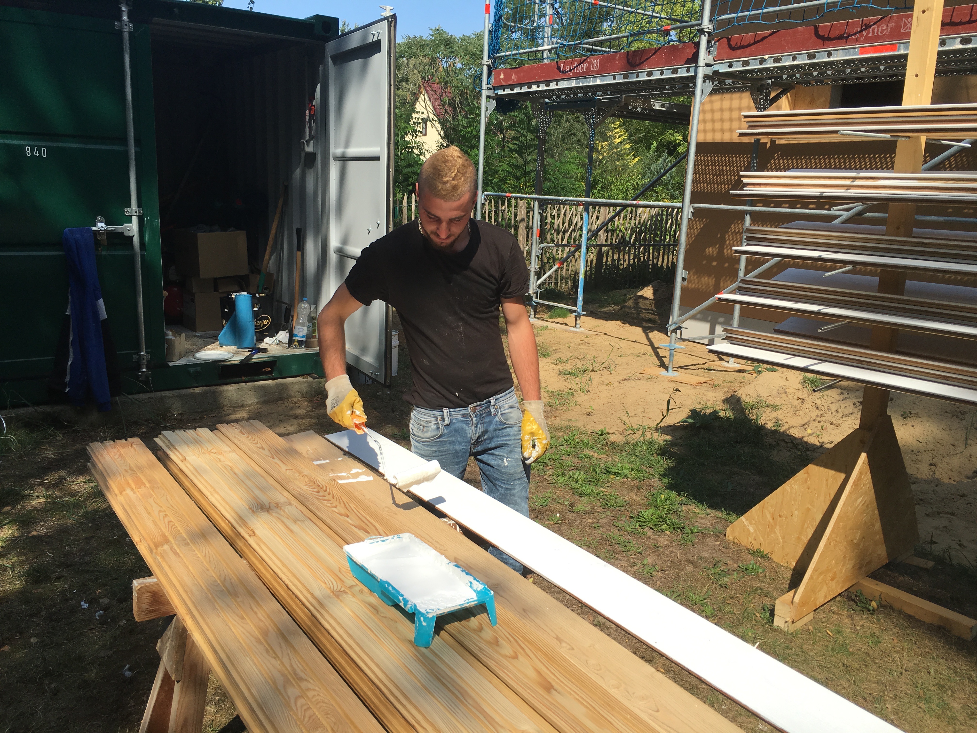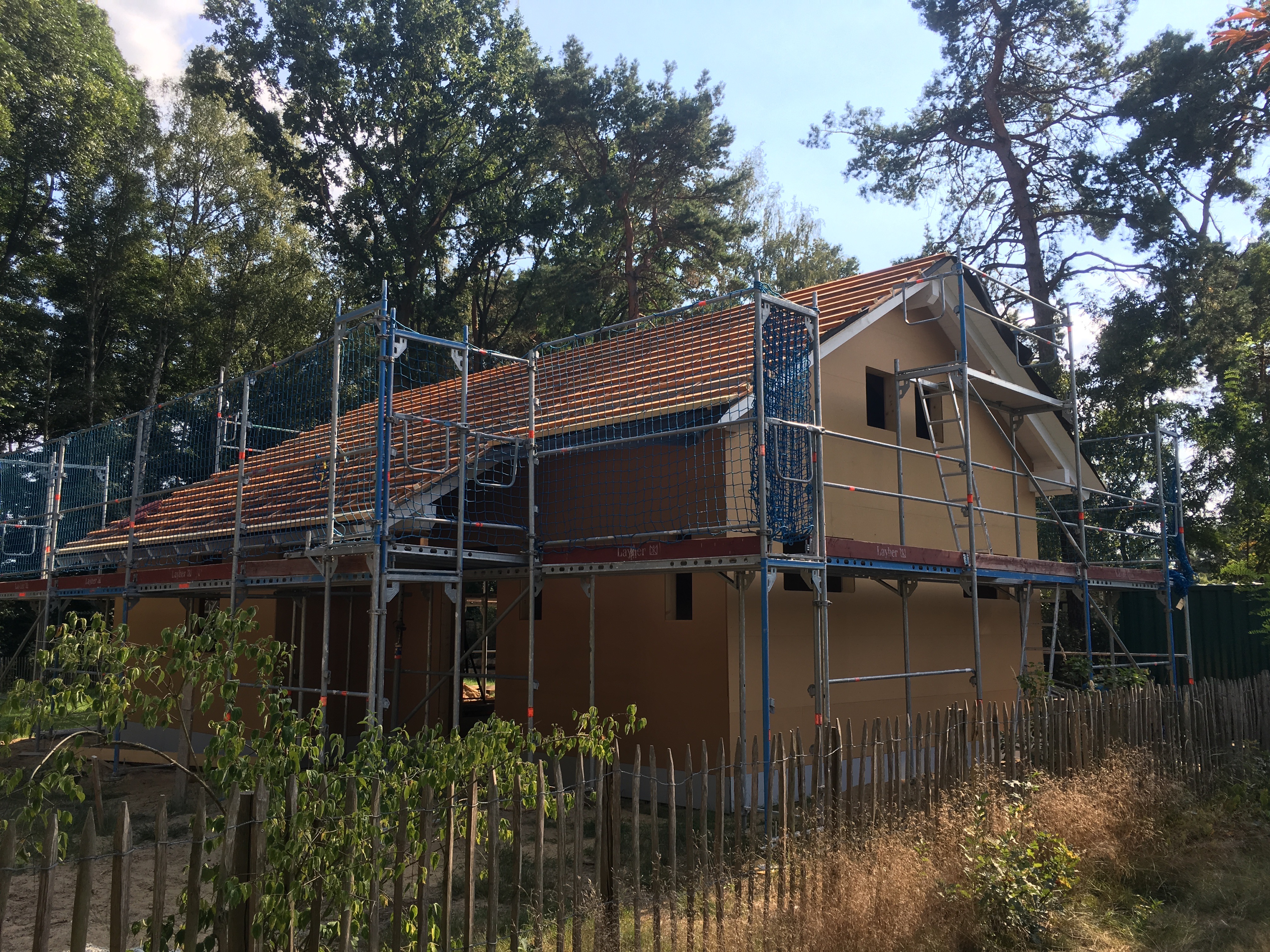 Wie gesagt der Straßenbau hat begonnen…und Herr Stich hat sich nach der Baubesprechung mit der Isolierung des Dachstuhls abgemüht…was für eine harte Arbeit