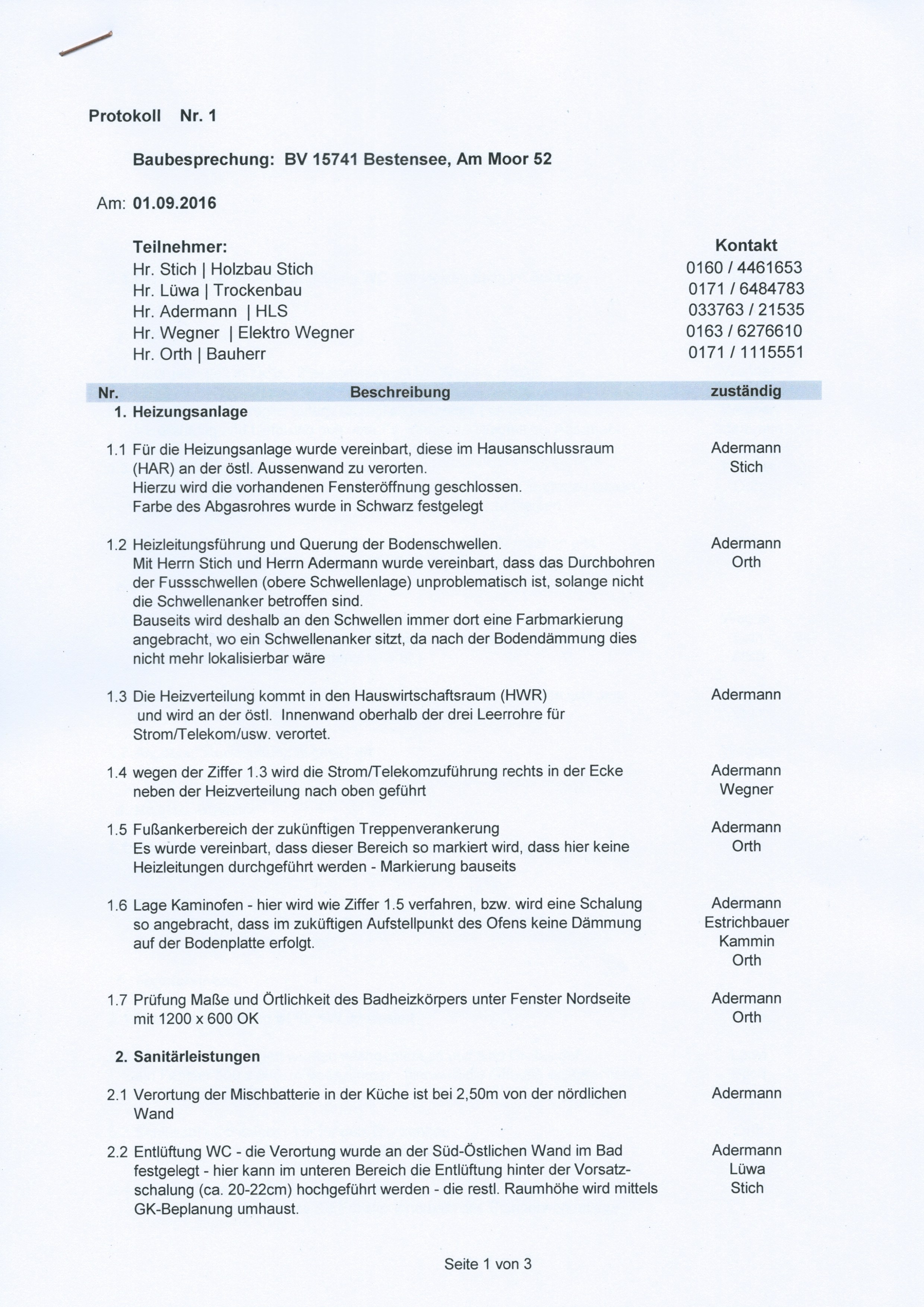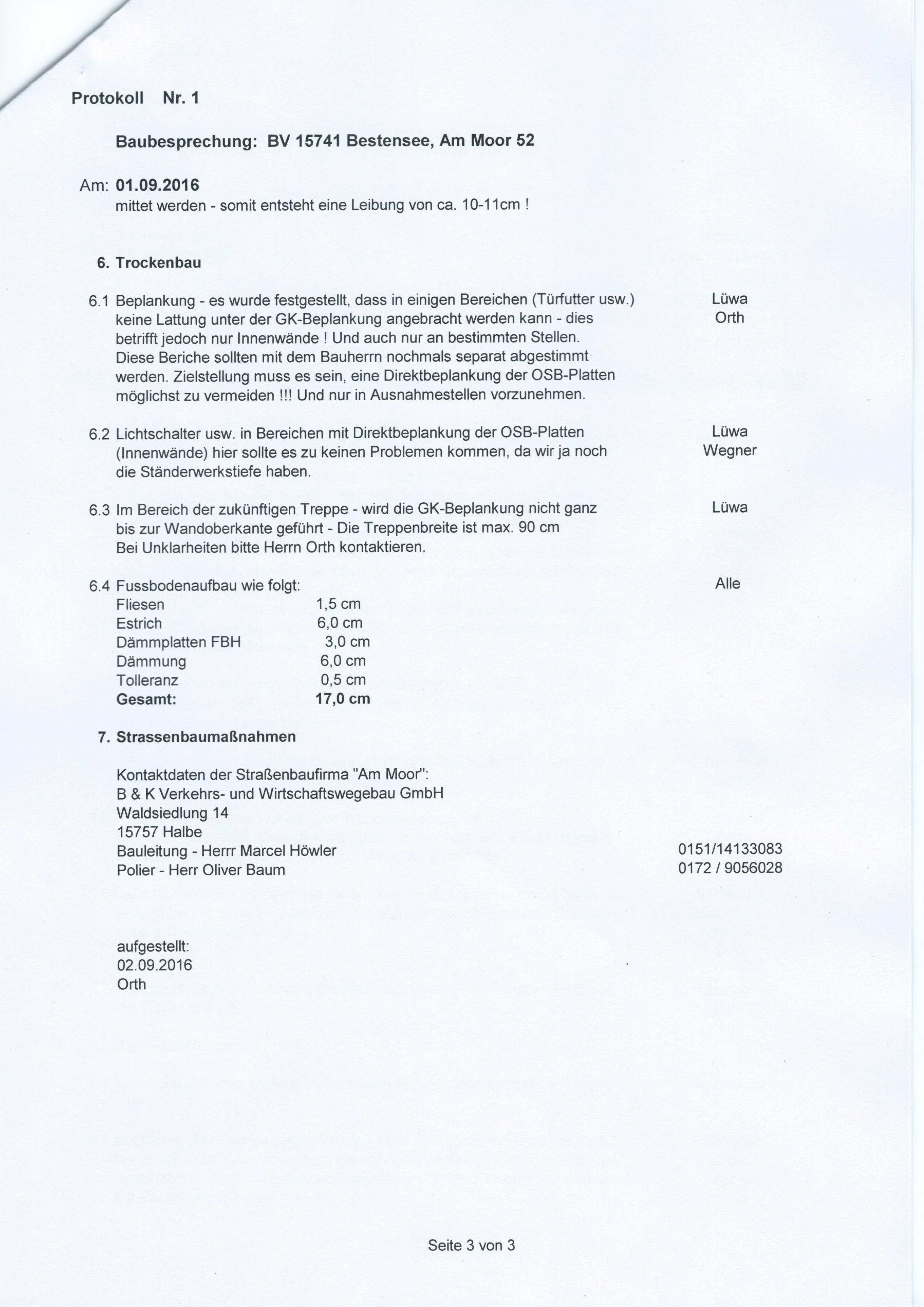 Das 1. Bauprotokoll: