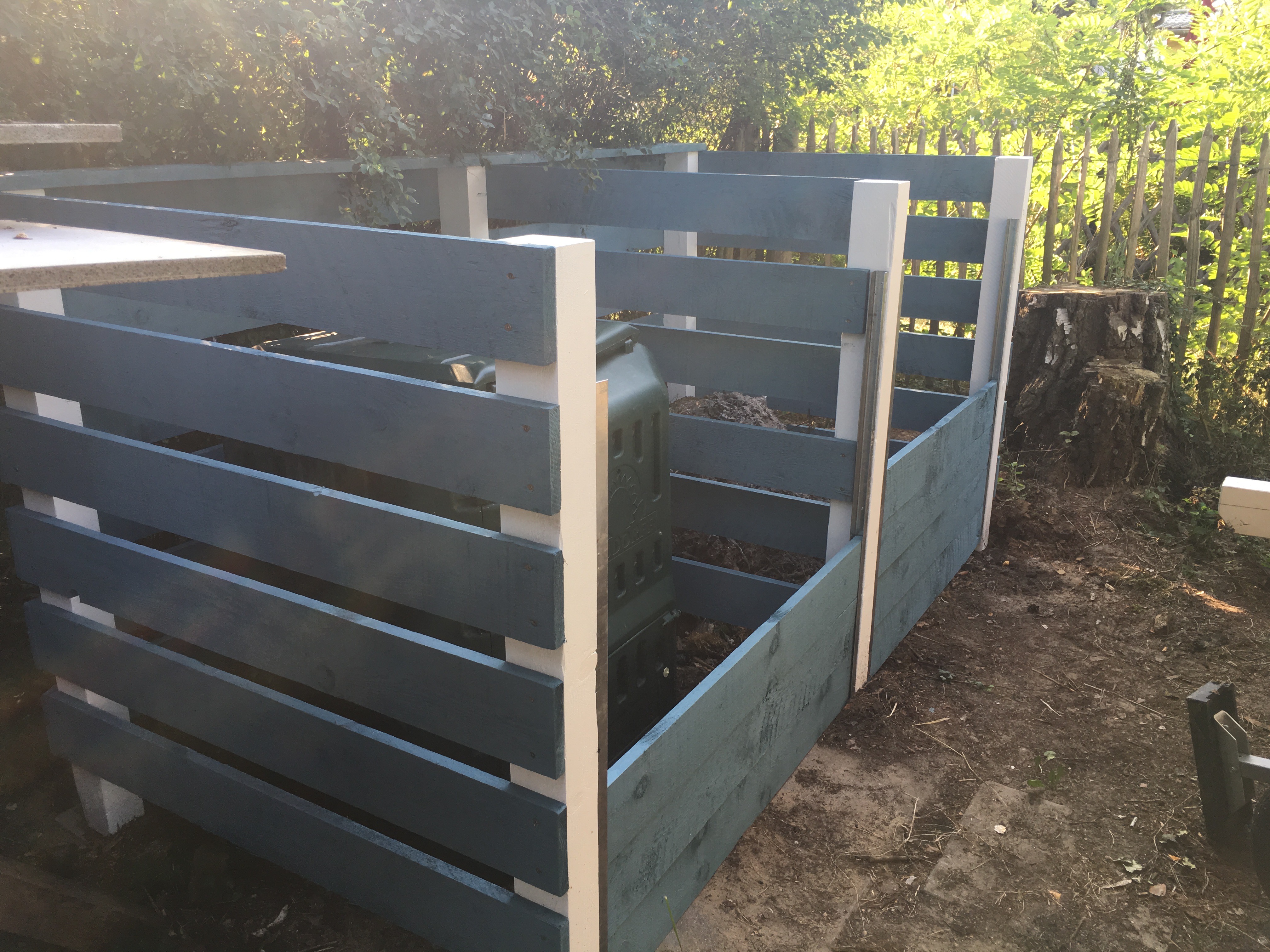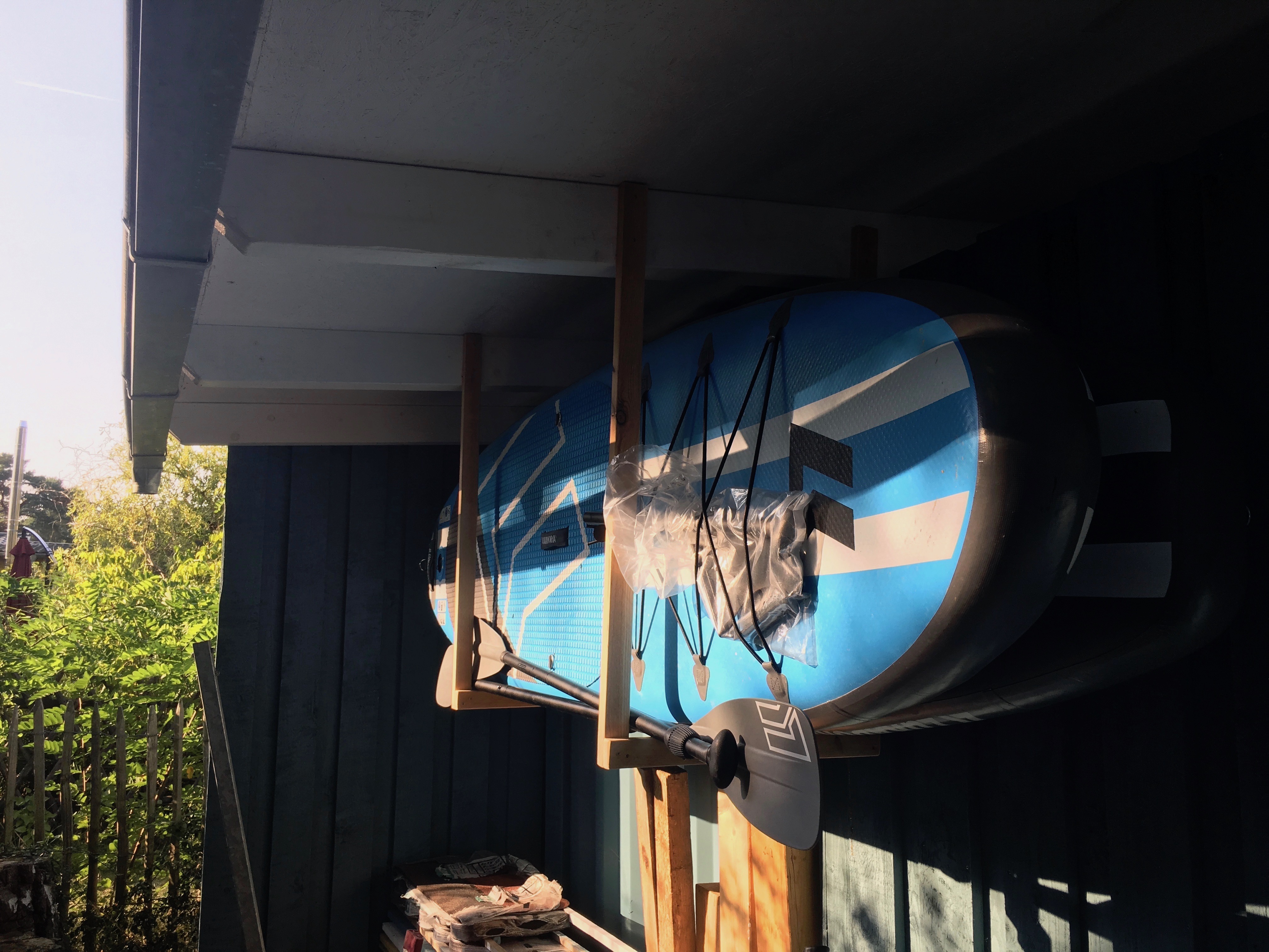 Am Kompost fehlte ja noch vorne der Abschluss. Hierzu habe ich 2 x 2m U-Profile verzinkt bestellt…die kamen auch pünktlich am Freitag, so dass der Einau am Samstag morgen erledigt wurde. Und die Stand Up Boards haben einen netten Unterschlupf gefunden.