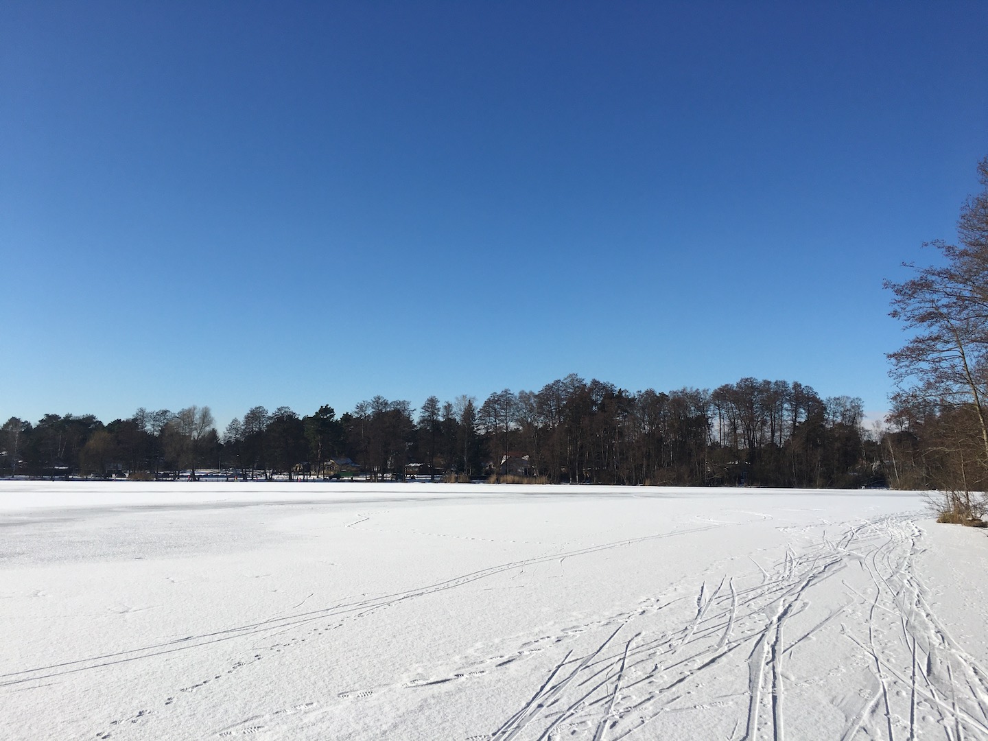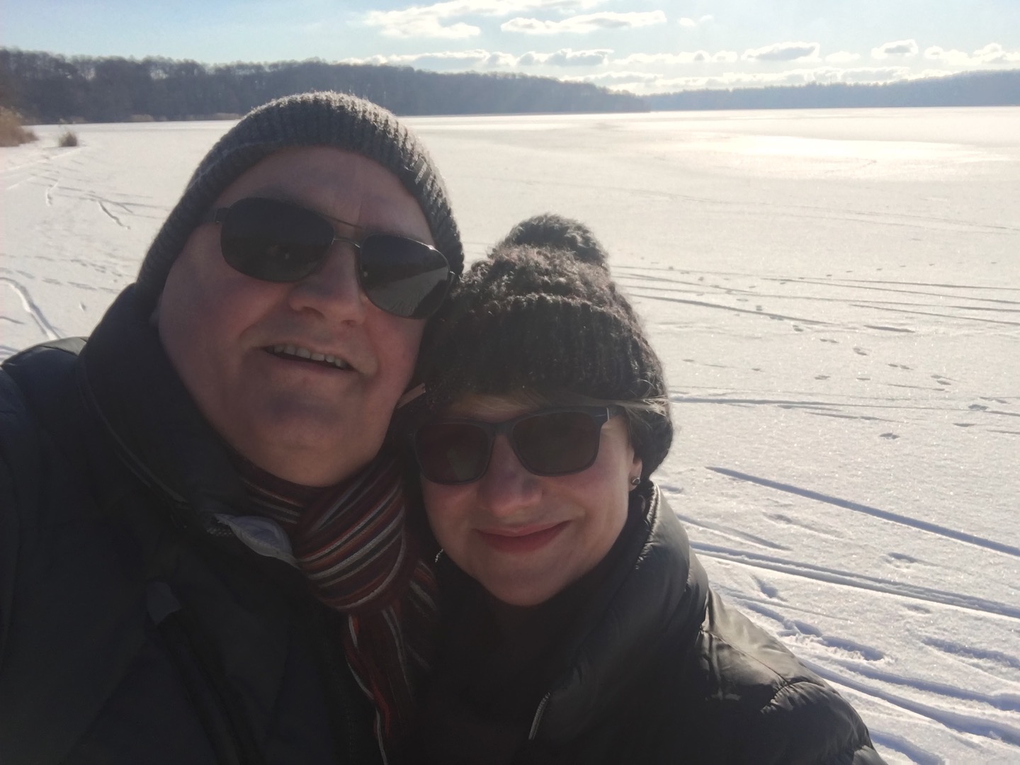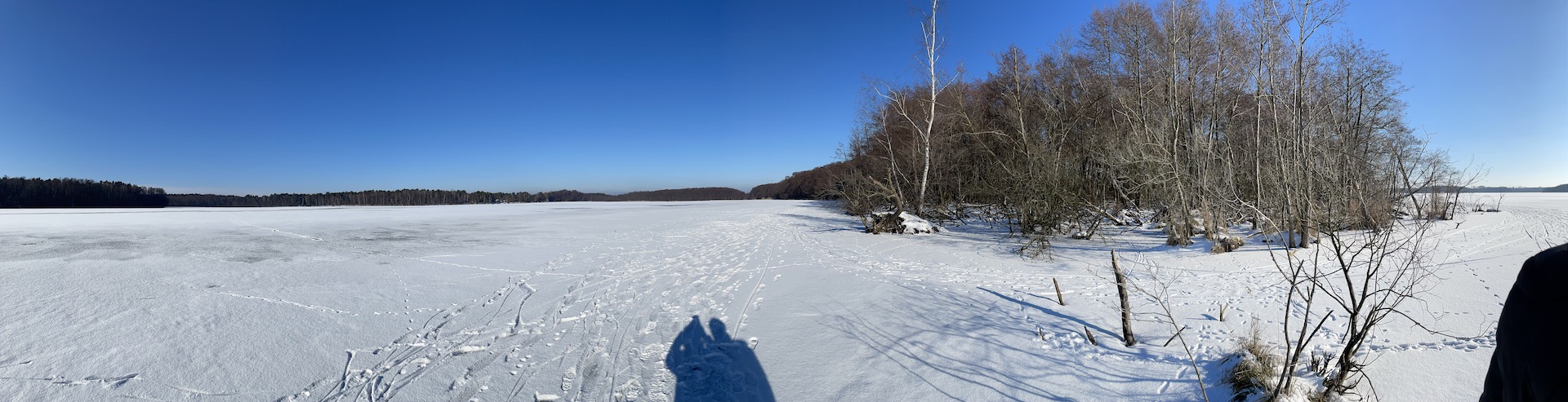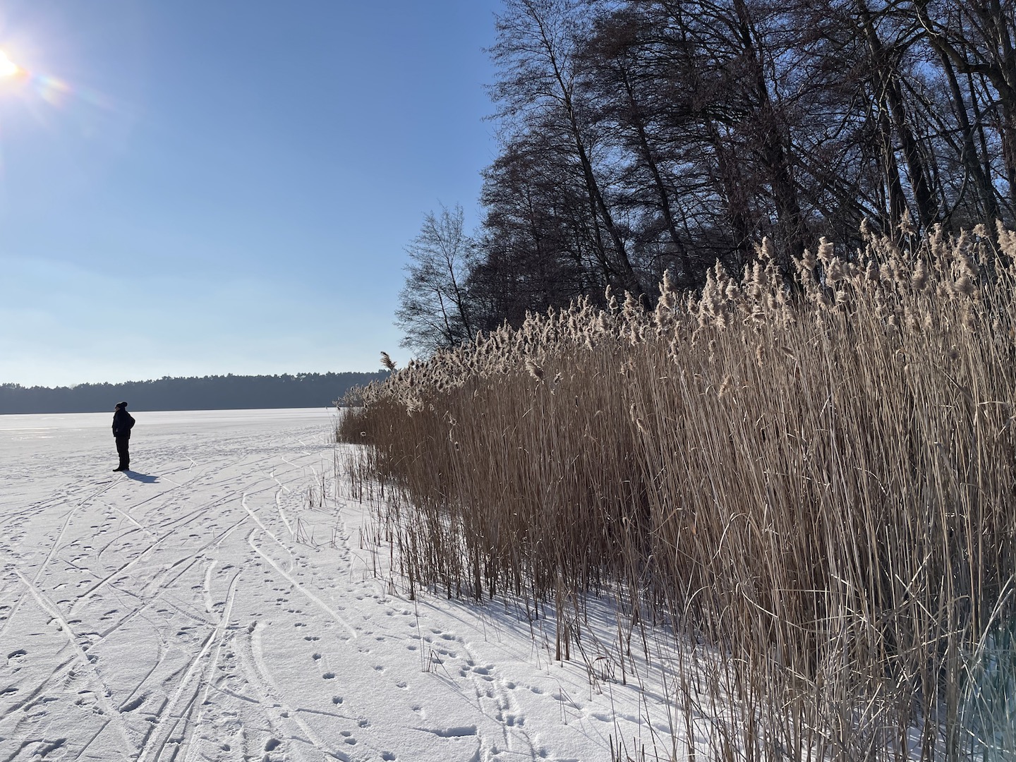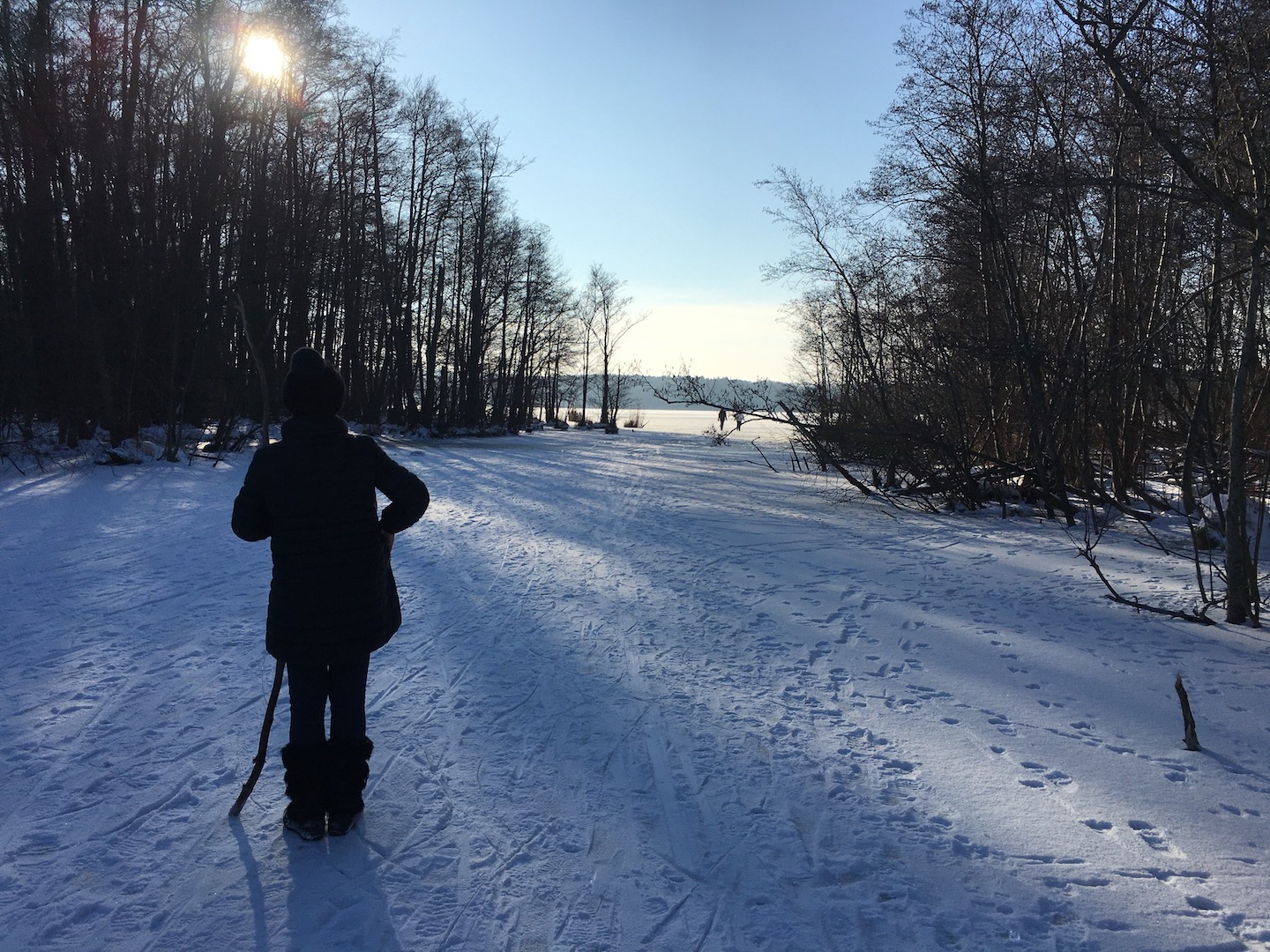 Am Samstag hatten wir den Mut das erste Mal aufs Eis zu gehen. Der See lag mit einem dünnen weißen Mantel vor uns. Wir sind über unseren Steg bis zum Durchlass an der Insel gelaufen. Genau am Durchlass hatte es dann zu Knacken angefangen – Antje meinte wegen meiner Schwerhörigkeit würde ich das bestimmt nicht gehört haben – doch sehr wohl :-). Wir waren ja nur wenige Meter weg vom Ufer sind dann jedoch besser wieder zurück und entlang der Promenade am Vereinsgebäude entlang. Da waren wir nicht Alleine, sonder viele Familien mit Ihren Kindern auf dem Eis.