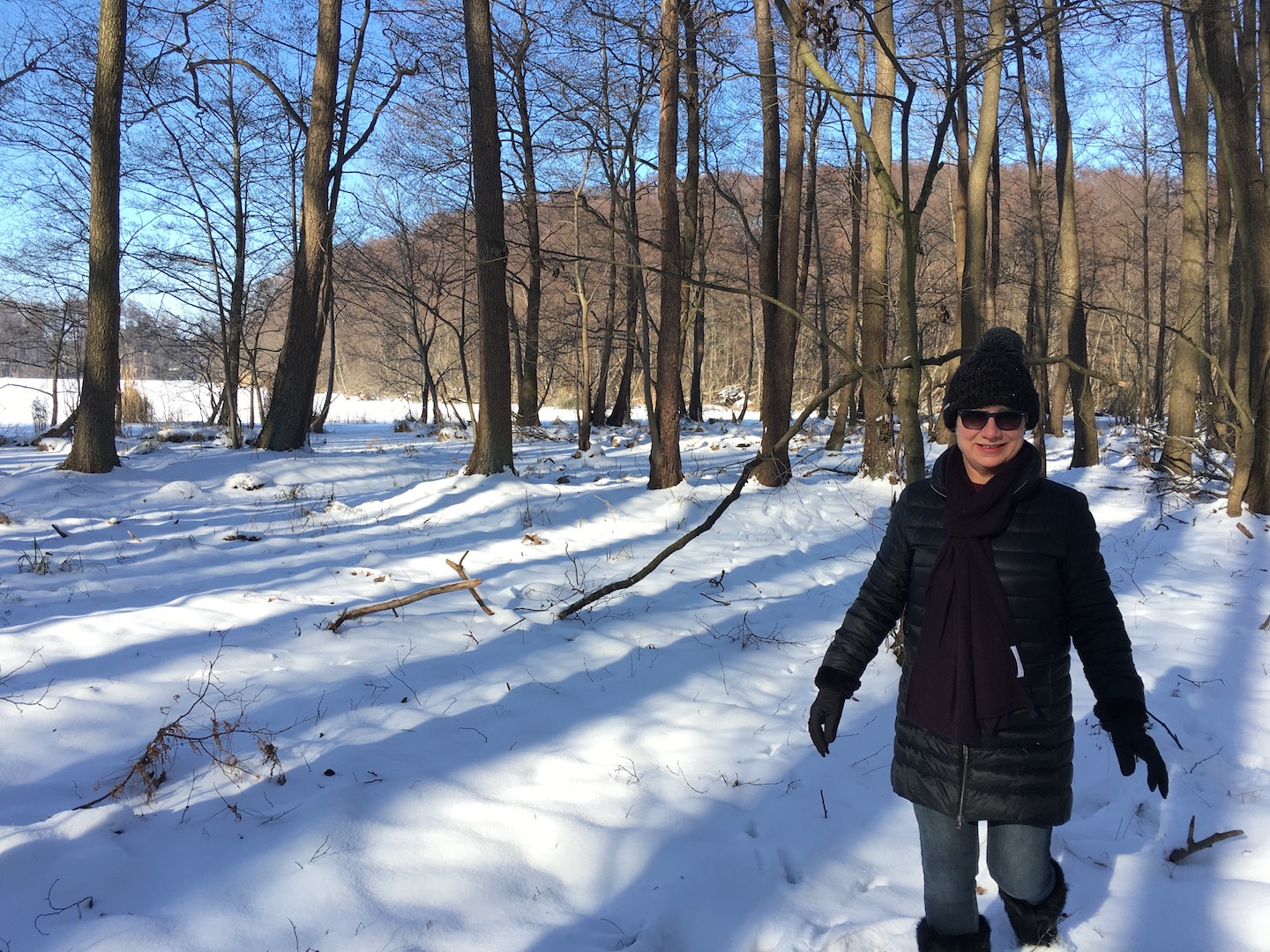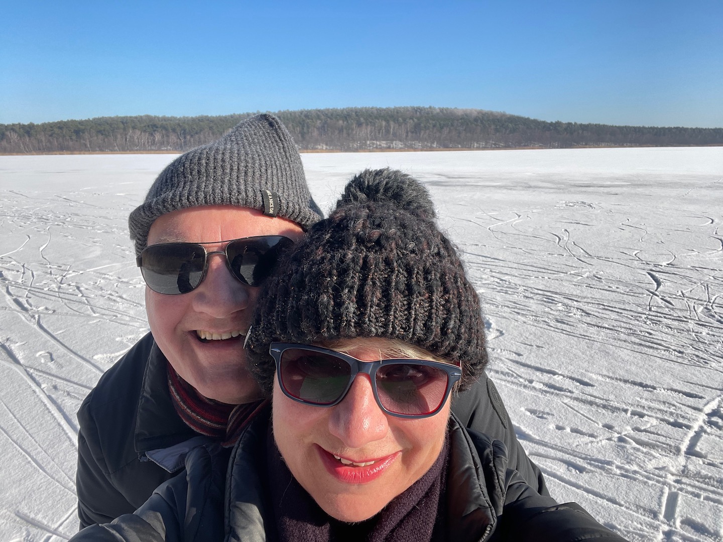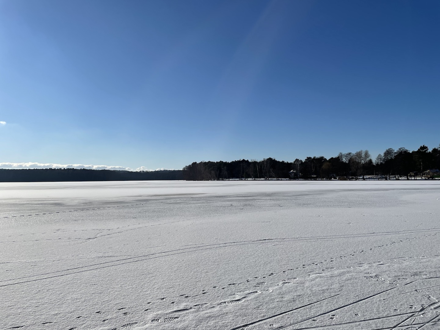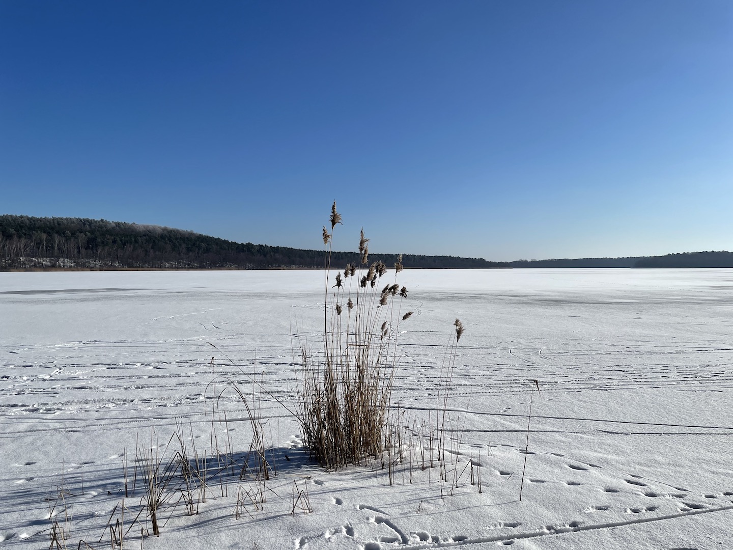 Am Samstag hatten wir den Mut das erste Mal aufs Eis zu gehen. Der See lag mit einem dünnen weißen Mantel vor uns. Wir sind über unseren Steg bis zum Durchlass an der Insel gelaufen. Genau am Durchlass hatte es dann zu Knacken angefangen – Antje meinte wegen meiner Schwerhörigkeit würde ich das bestimmt nicht gehört haben – doch sehr wohl :-). Wir waren ja nur wenige Meter weg vom Ufer sind dann jedoch besser wieder zurück und entlang der Promenade am Vereinsgebäude entlang. Da waren wir nicht Alleine, sonder viele Familien mit Ihren Kindern auf dem Eis.