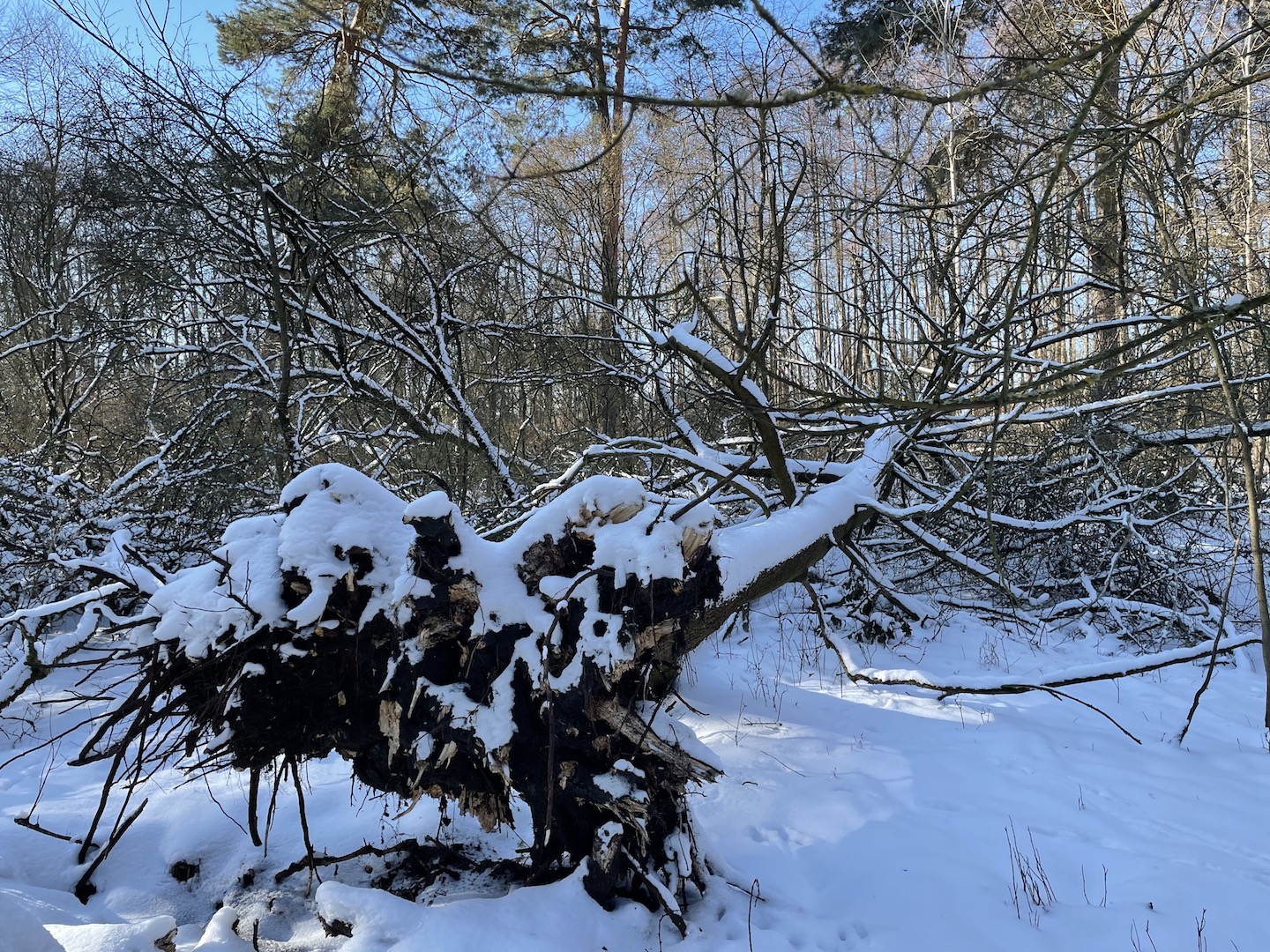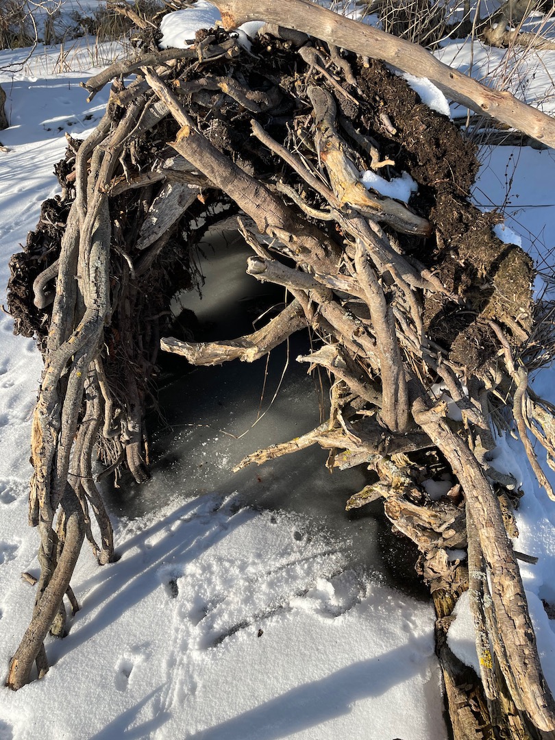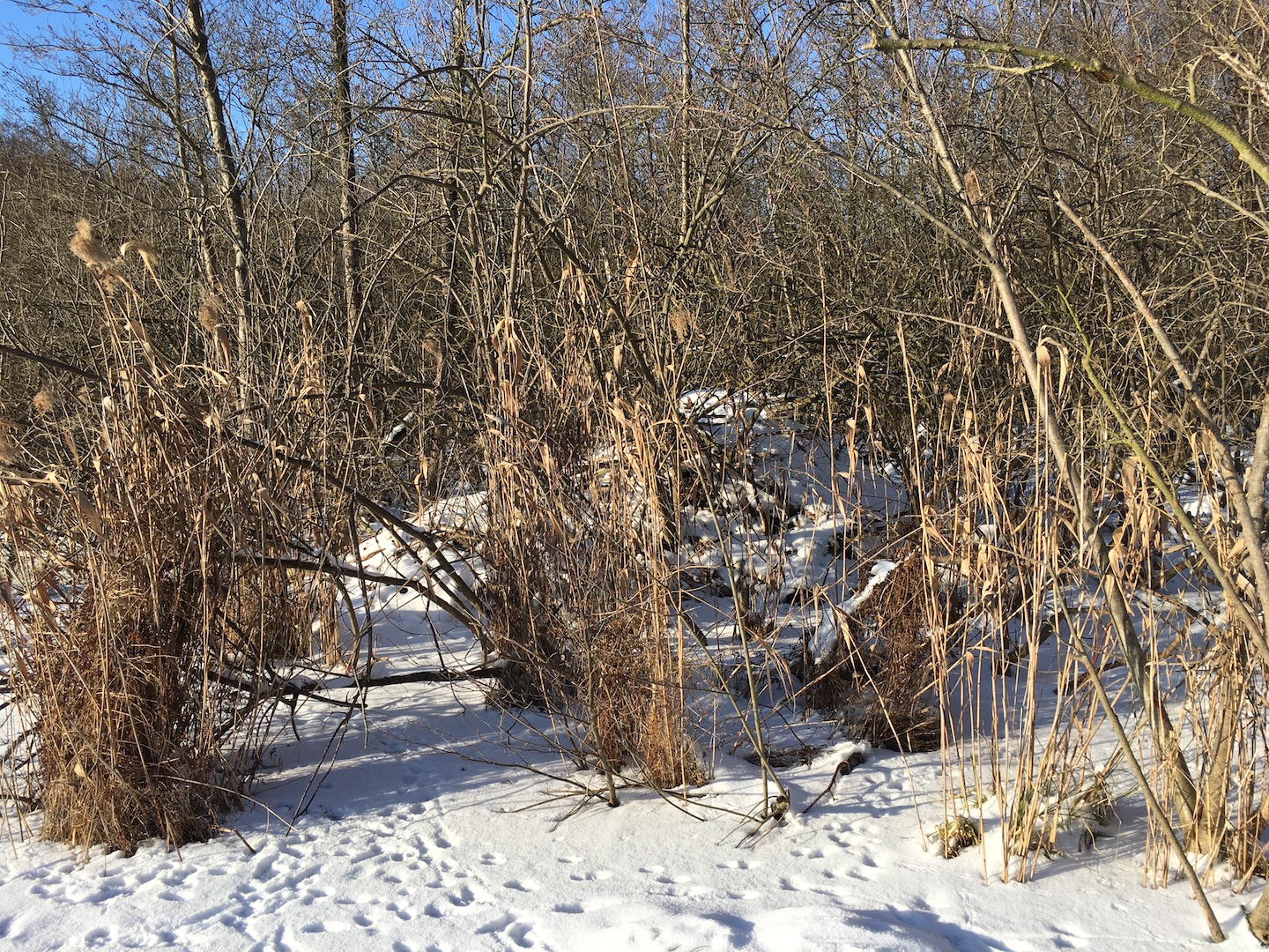 Dann ging es rüber zur Insel. Die wollten wir unbedingt mal Erkunden. Seltsame spuren im Schnee – viele umgefallene Bäume und Schlafplätze von Tieren…(die Spur könnte von einem Marder sein)
