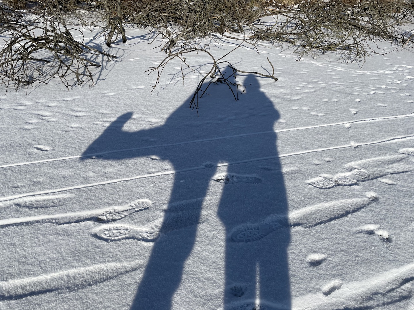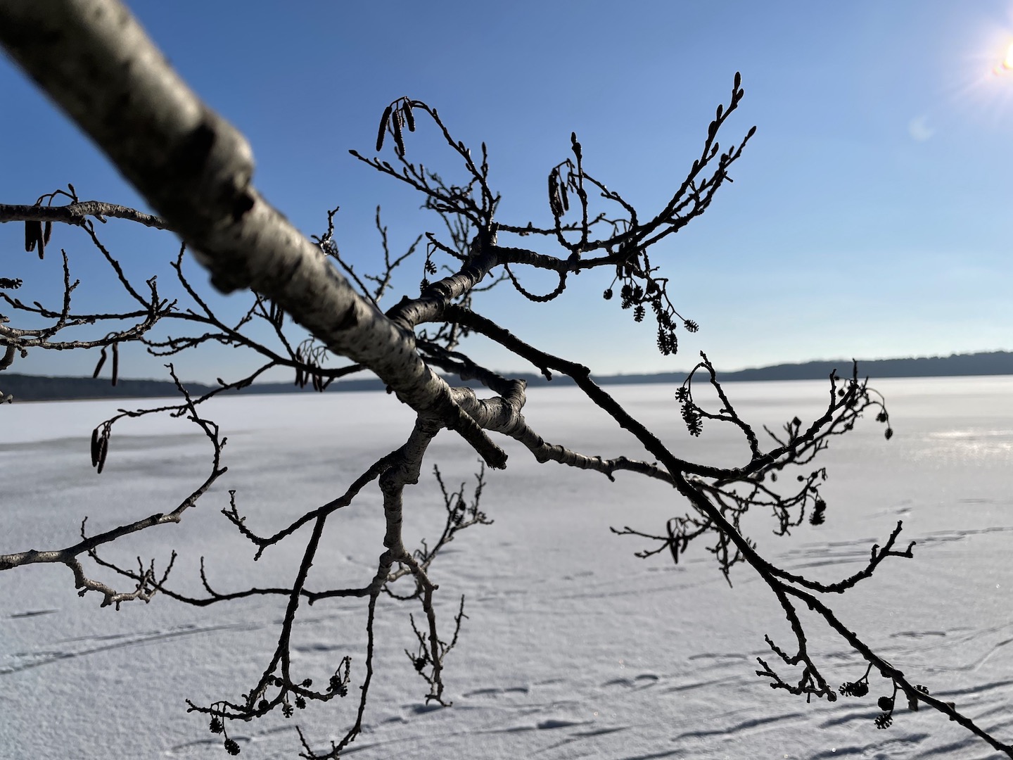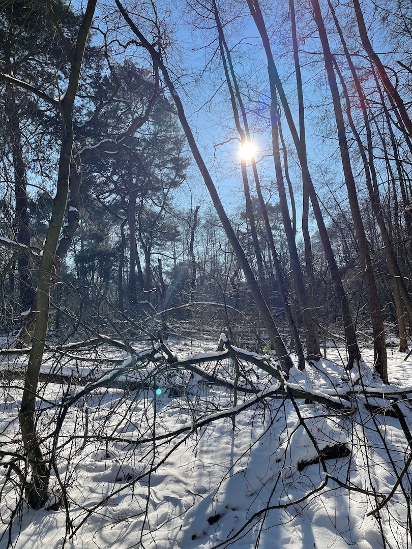 Dann ging es rüber zur Insel. Die wollten wir unbedingt mal Erkunden. Seltsame spuren im Schnee – viele umgefallene Bäume und Schlafplätze von Tieren…(die Spur könnte von einem Marder sein)