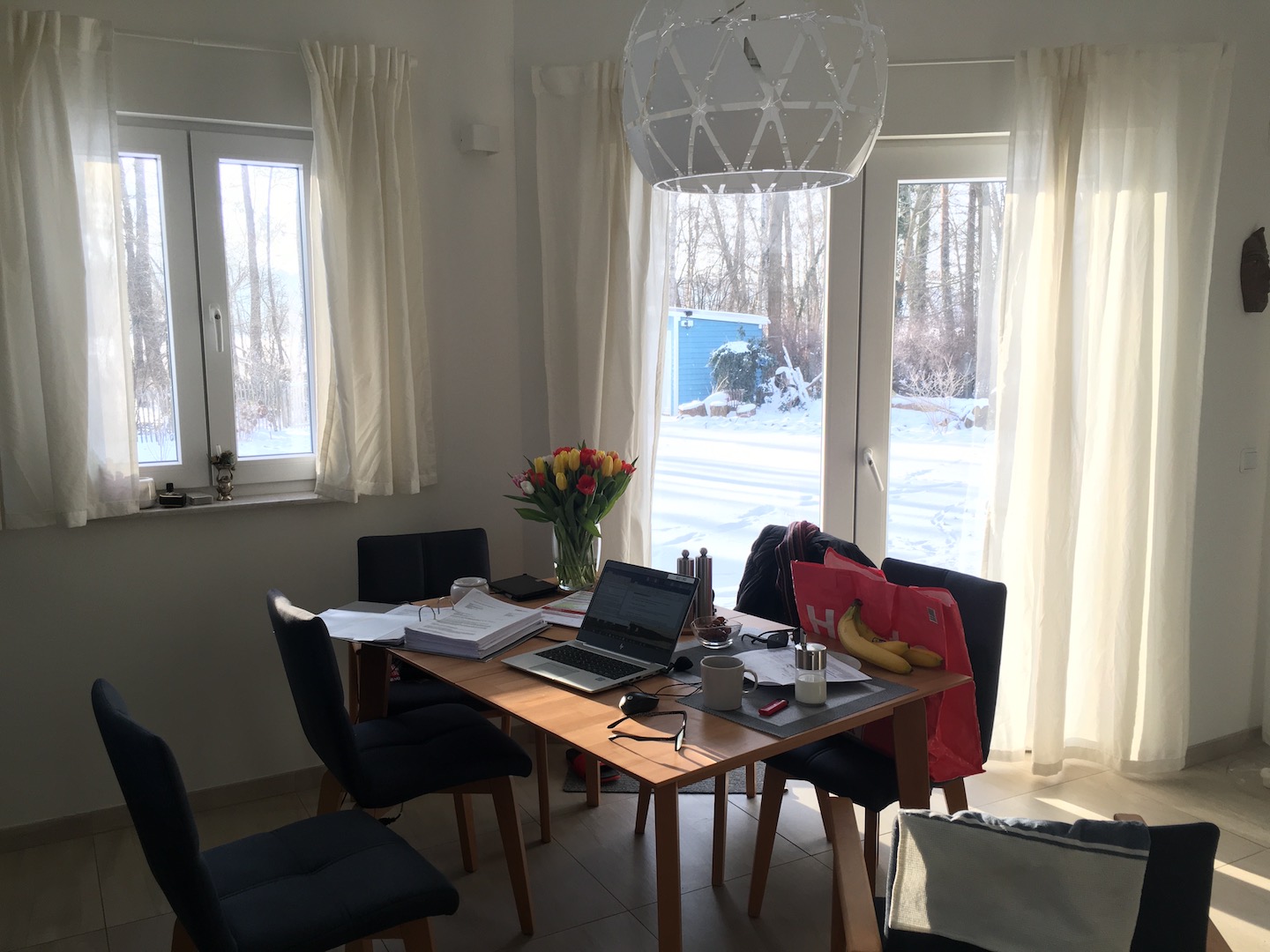 Antje war am Montag Morgen schon früh aufgebrochen und ich durfte noch den super Sonnenaufgang genießen und mich dann dem Home-Office widmen.