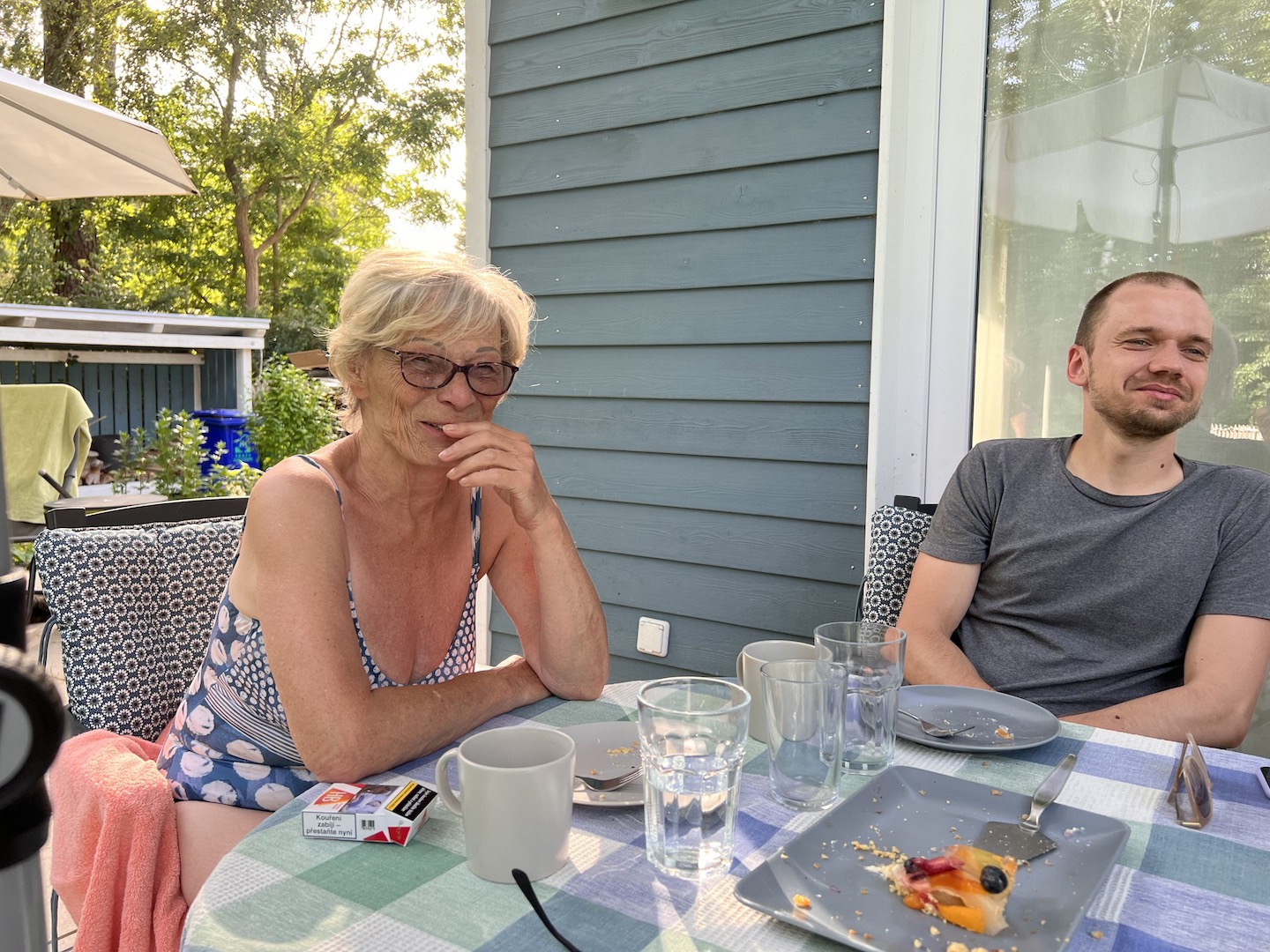 Am Freitag ist die liebe Ute angereist um gemeinsam mit Stephan und Laura Ihren Abschluss zur Ärztin zu feiern! Die Beiden „Doc´s“ sind am Samstag angekommen und am Montag ging es in den Urlaub nach Sardinien vom BER 🙂 Leider mit Verspätung – Doch trotz der vielen Strikes in der Luftfahrt – Gott sei Dank – Die Zeit zusammen war wunderbar. Auch für die Katzen – Da Laura und Stephan selbst bald zwei Katzen haben wollen wurde viel Gestreichelt 🙂 Im Garten wurde zudem Gewerkelt (Ute war wie immer nicht zu Bremsen) – Gedöst (bei um die 30°) und Geschwommen und eben auch Gefeiert ! Antje war im Glück ob der vielen Lieben um Sie – das hat gut getan.