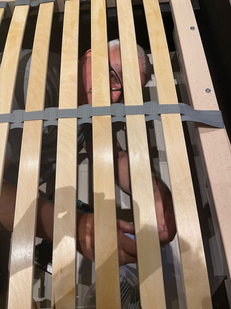2023_02_24_huhu das neue Bett ist angeliefert. Die Jungs sprachen kaum Deutsch, doch alles gut Nebenher war noch Fa.Adermann wegen der Gastherme da – ein Dilemma – ohne Ende – Die Jungs forschten nach dem Fehler – eine irre laute Pumpe zum Spühlen mit einer ziemlich scharfen Lösung war im Einsatz – ich im Home Office später mehr.