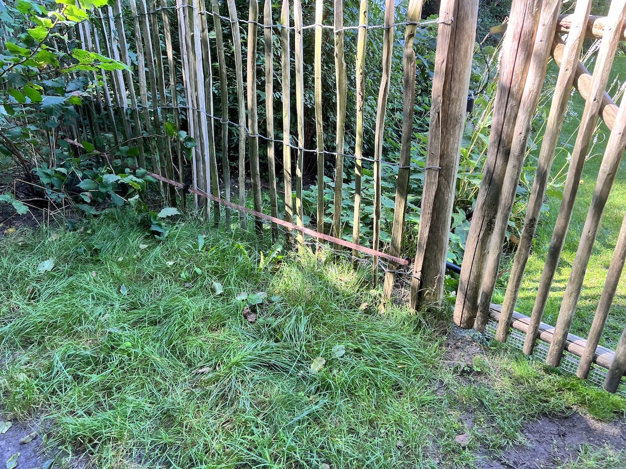2023_09-02 Der Biber treibt ja nun schon in der Nachbarschaft sein Unwesen – so fallen da mal Apfelbäume usw…. Also musste ein Schutz her
