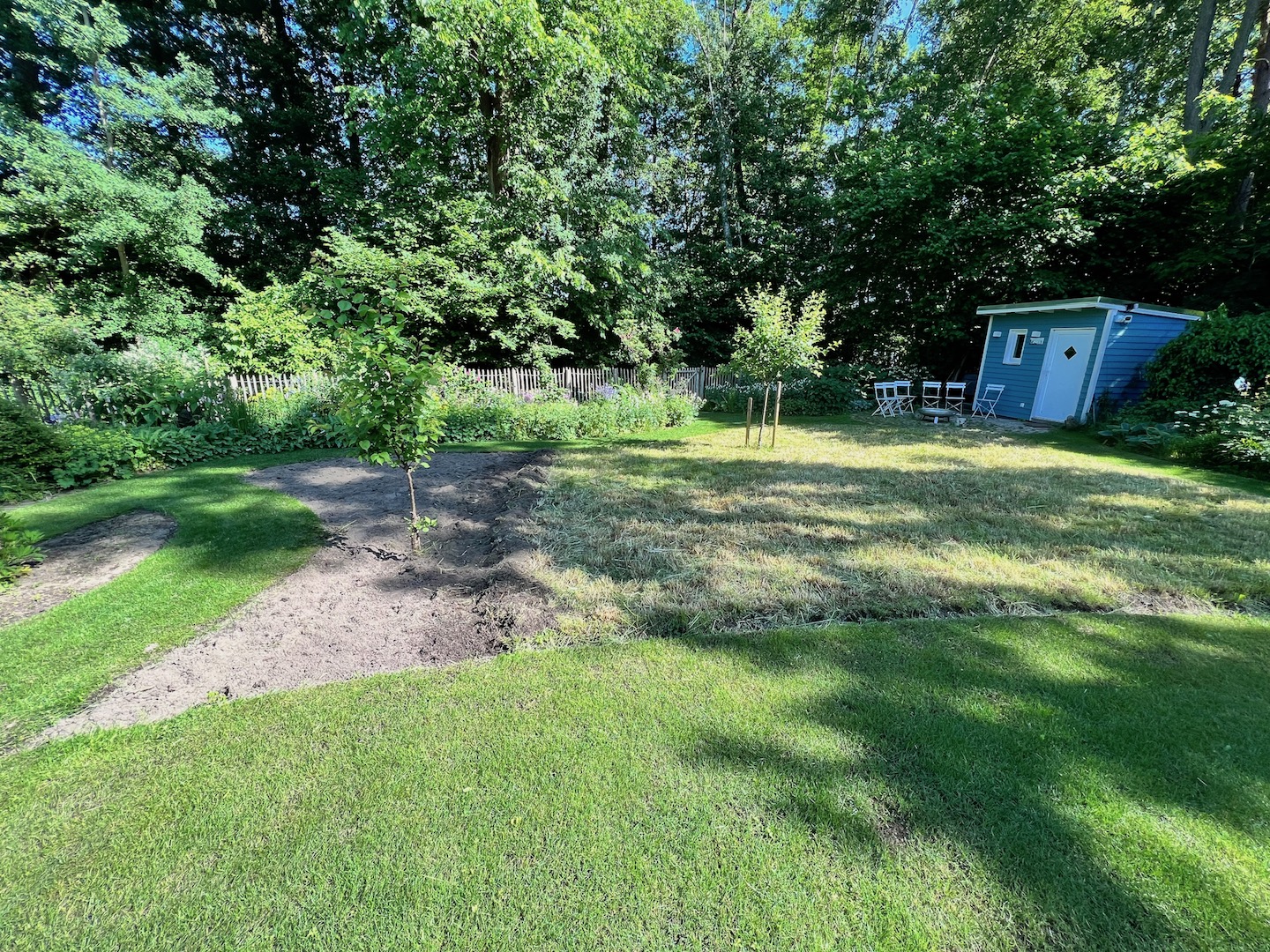 Doch nun musste die alte Wiese weg! Was fĂĽr eine Schufterei, ca 120qm – mit zwei Hacken musste Alles raus – es ging bis zum 30.06.2023, also mehrere Weekends- Auch Dank dem Homeoffice ging es voran – dann konnte ich Säen 🙂