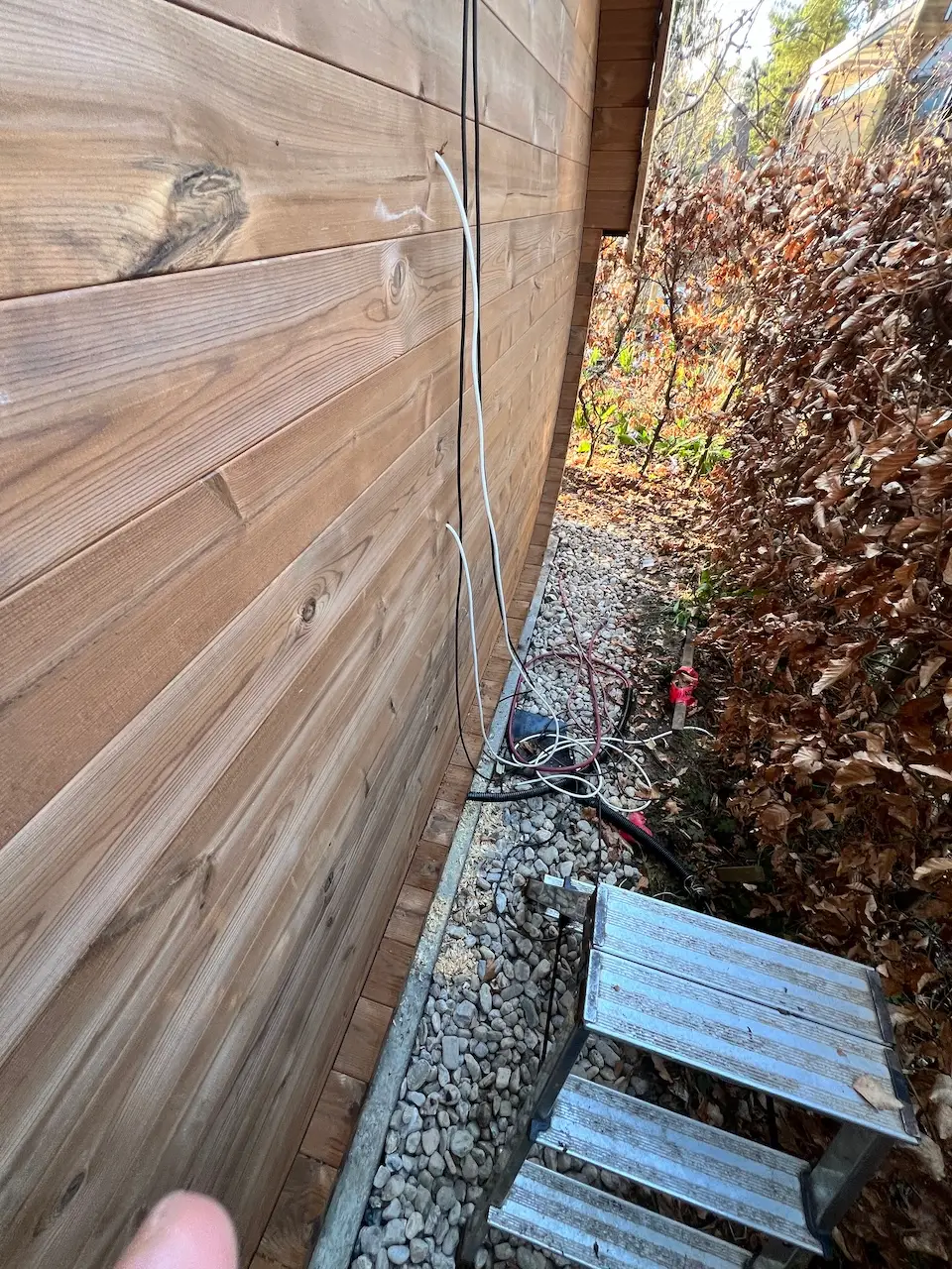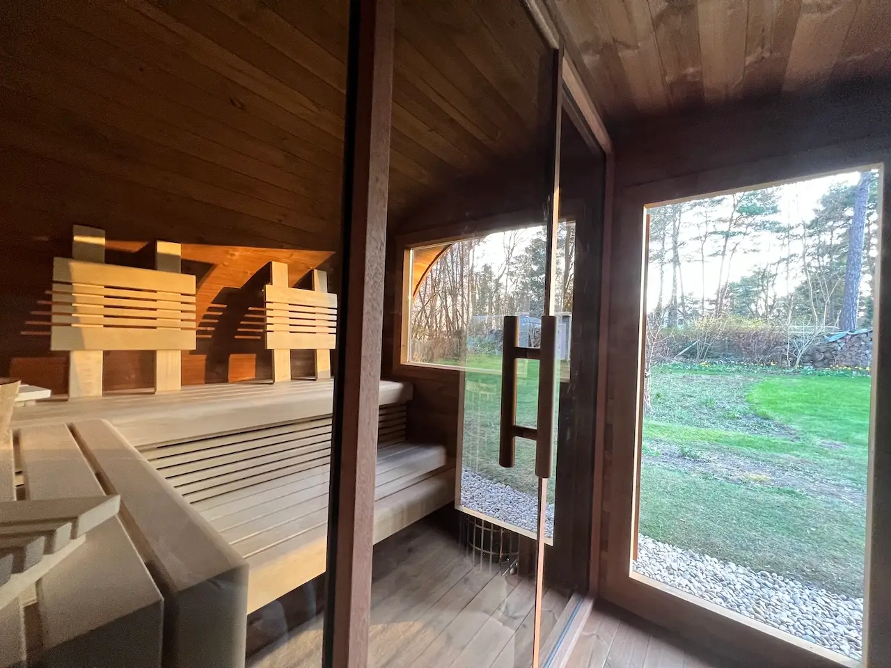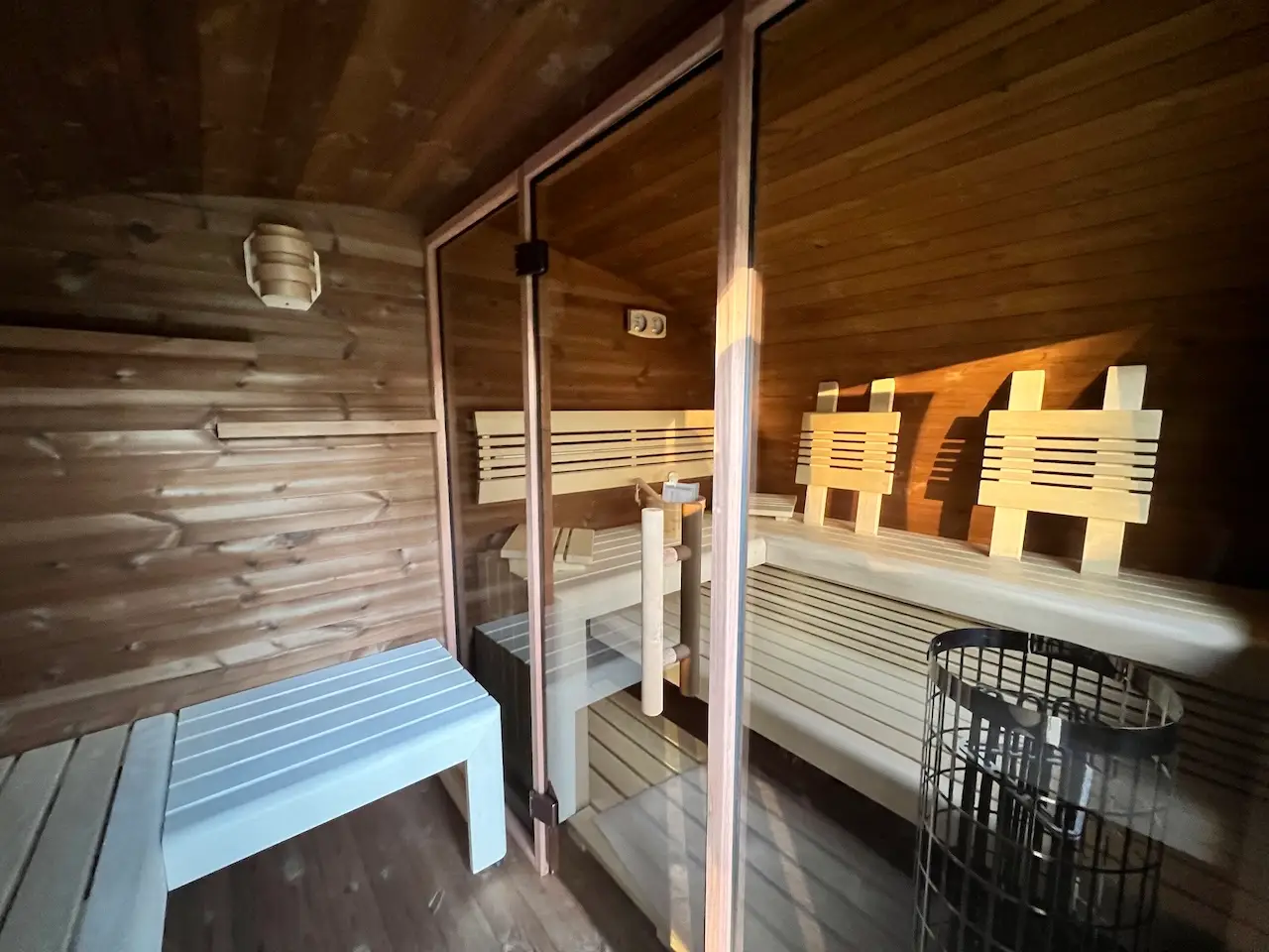 die Zwischenwand und rückwärtige Kabelkanäle, Dach fertig und noch eine kleine Anpassung durch mich angegeben. Der Ofen bekam noch ein kleines Kabelfach direkt an der Außenwand, damit sind die Kabel vom Ofen schön versteckt. Die Vorraumbänke sind nun ebenfalls montiert. Wir haben das Richtfest mit Cremant und Gegrilltem gefeiert.