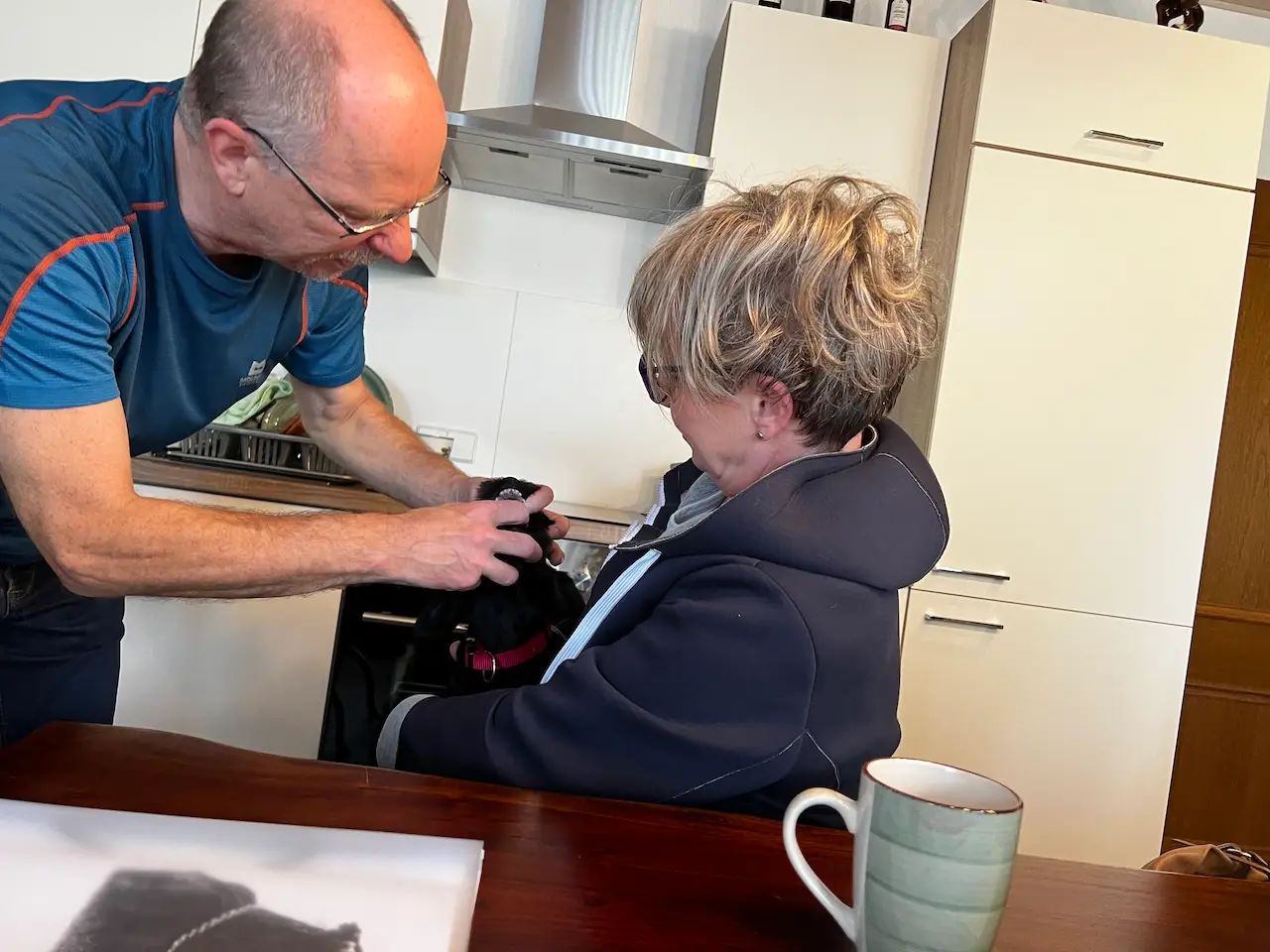 Es war soweit – Tierarzt und Zuchtbeschauerin noch am Donnerstag, Alles lief nach Uwes Plan. Uwe hatte uns für 9:30 bestellt, da Paula sehr begehrt ist – Wir waren schon um 9:00 Uhr in Delitzsch ! Laura kam auch aus Leipzig 🙂