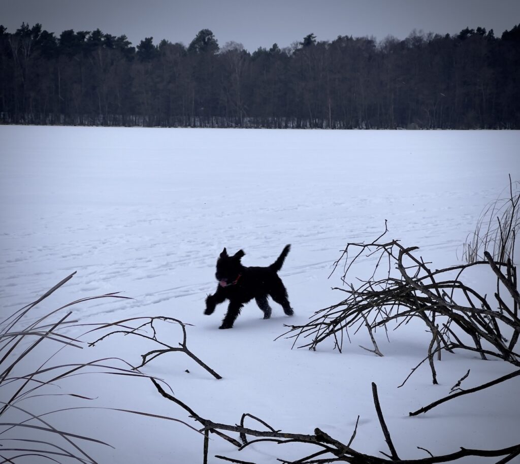 2026_Januar – Paula im Vorstadium zur Hitze, deshalb Freilauf auf dem Eis um die Insel – was für ein Spaß :-)