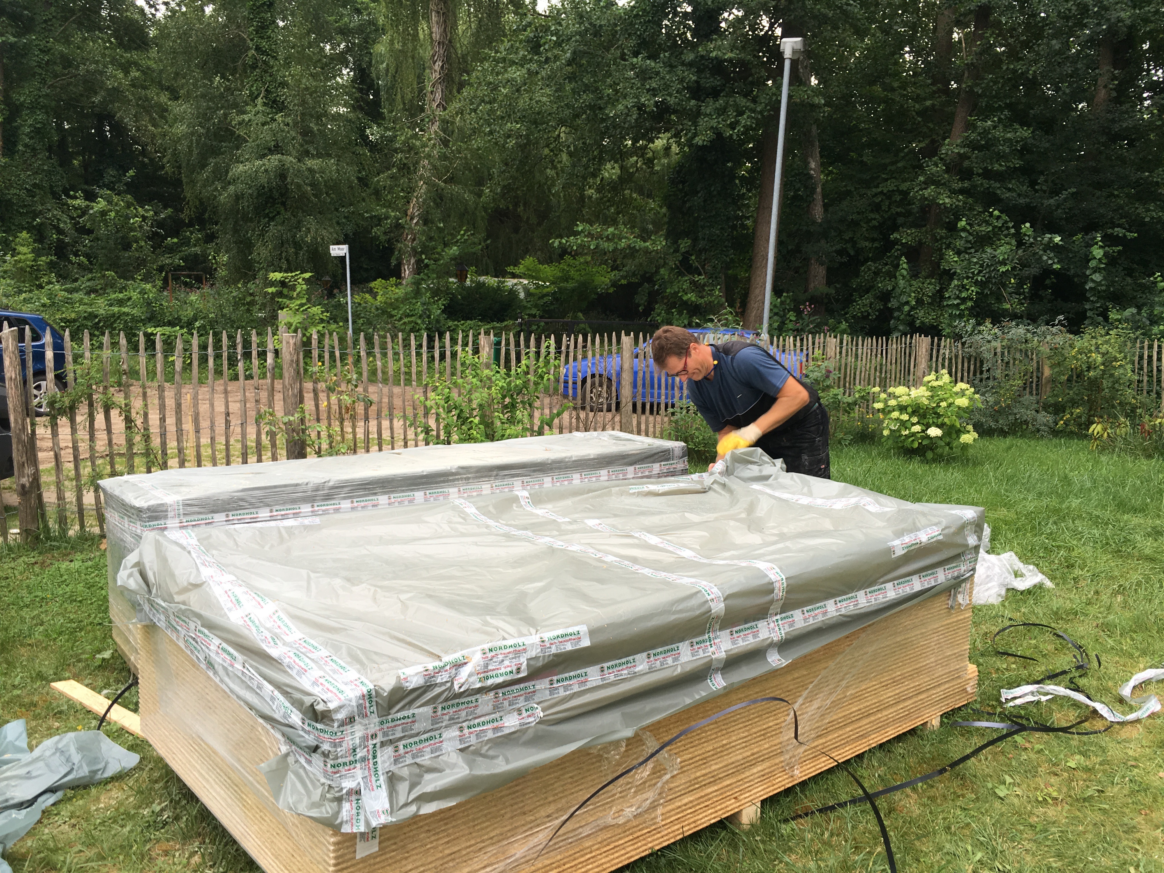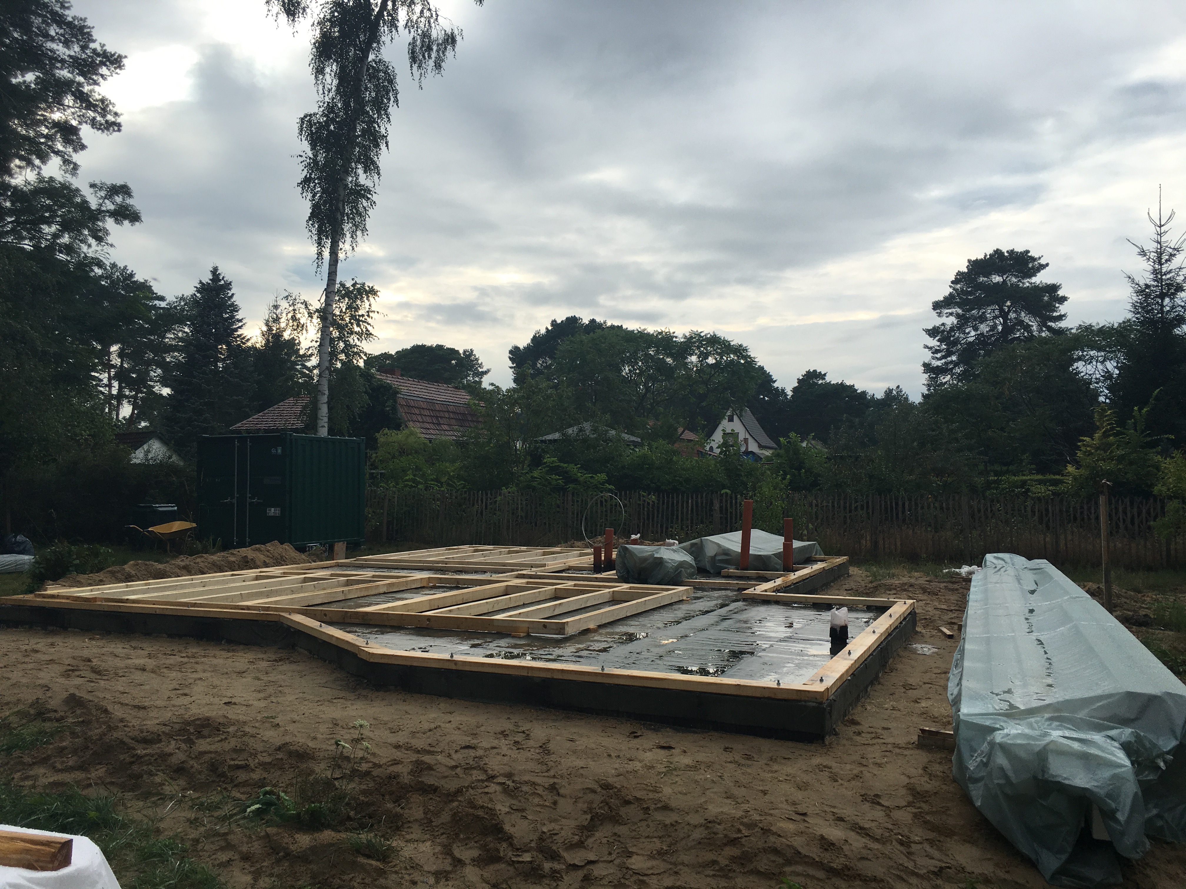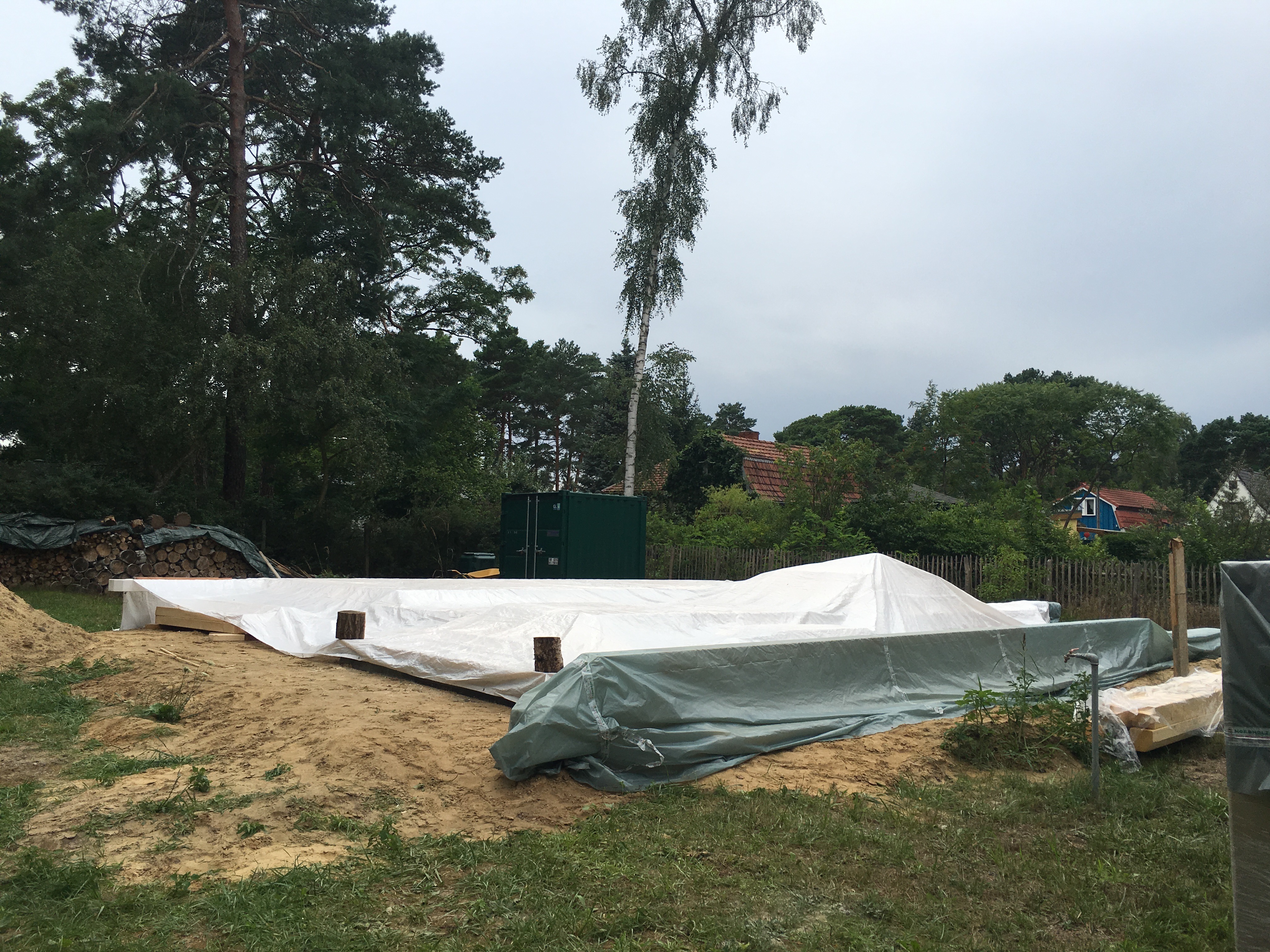 Unglaublich was sich da in ein paar Tagen so tut…war heute am Donnerstag nochmals nach der Arbeit in Bestensee. Herr Stich und sein Helfer waren gerade noch dabei aufzuräumen und das Tagwerk abzudecken….war beeindruckt von der Westwand – ein Stück Wand !