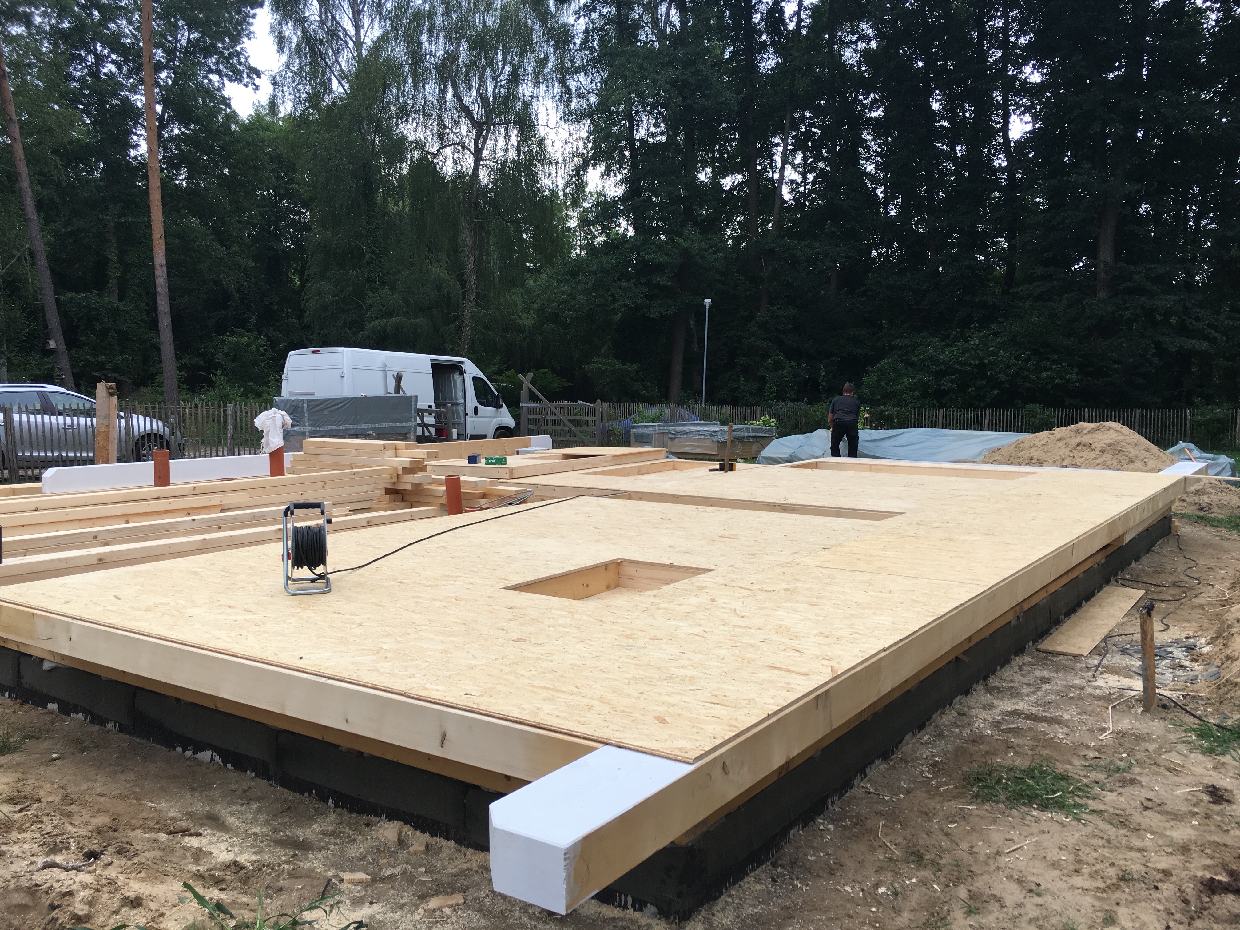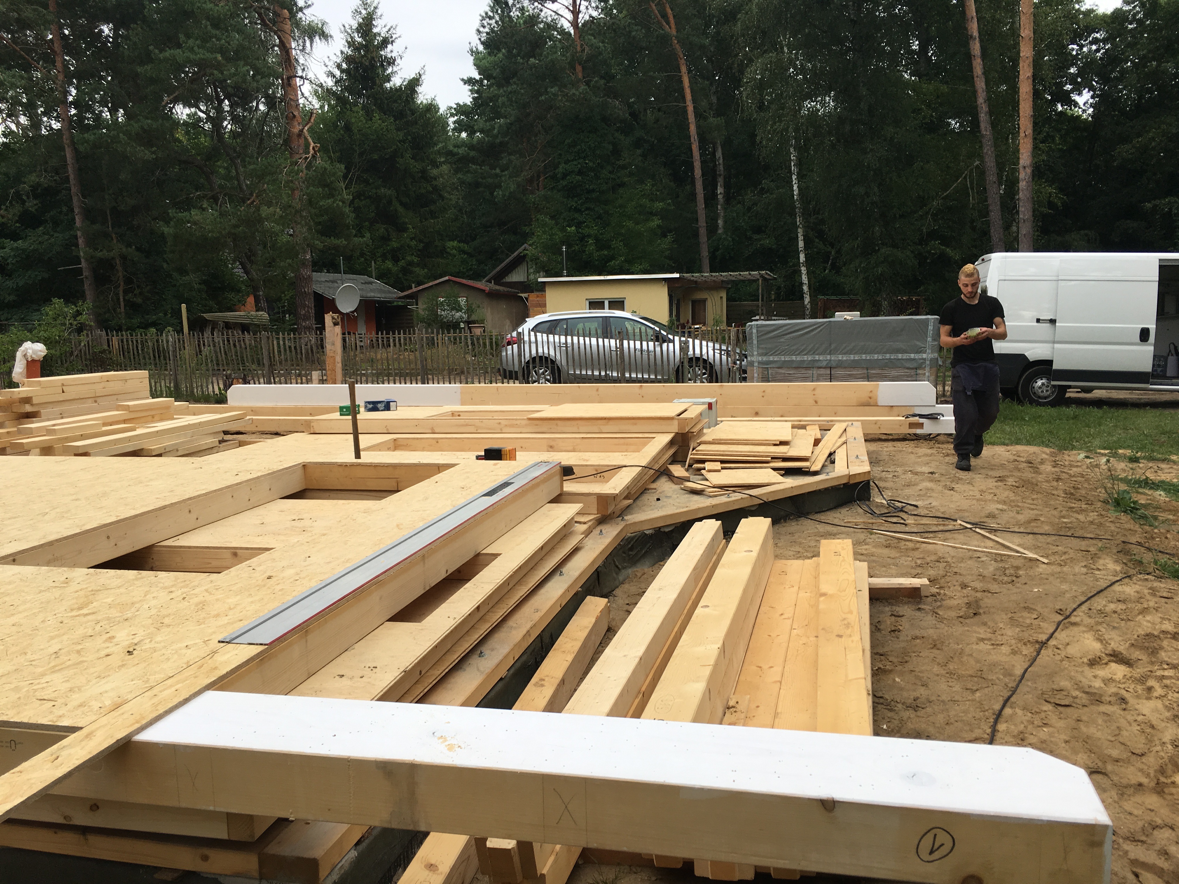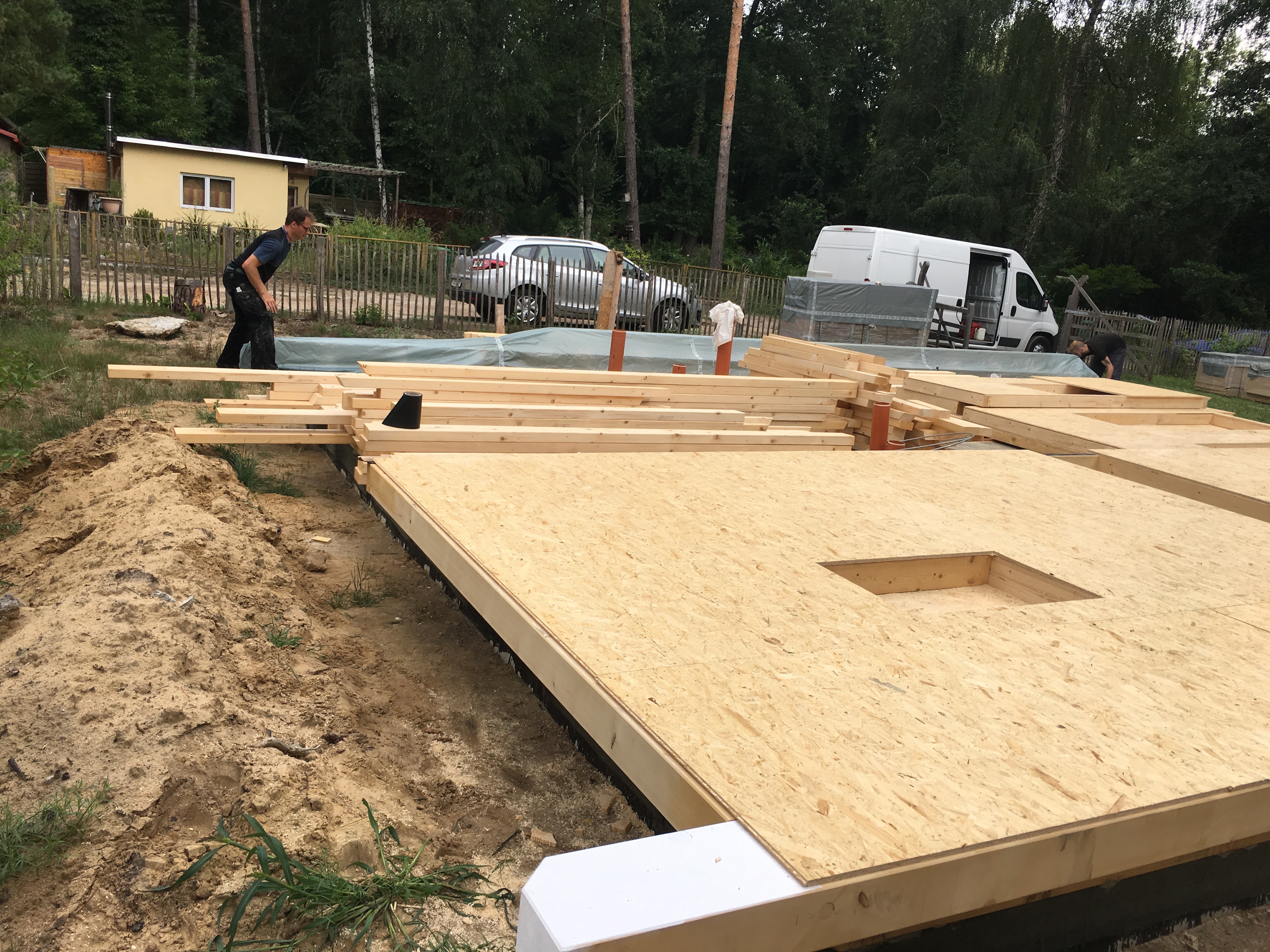 Unglaublich was sich da in ein paar Tagen so tut…war heute am Donnerstag nochmals nach der Arbeit in Bestensee. Herr Stich und sein Helfer waren gerade noch dabei aufzuräumen und das Tagwerk abzudecken….war beeindruckt von der Westwand – ein Stück Wand !