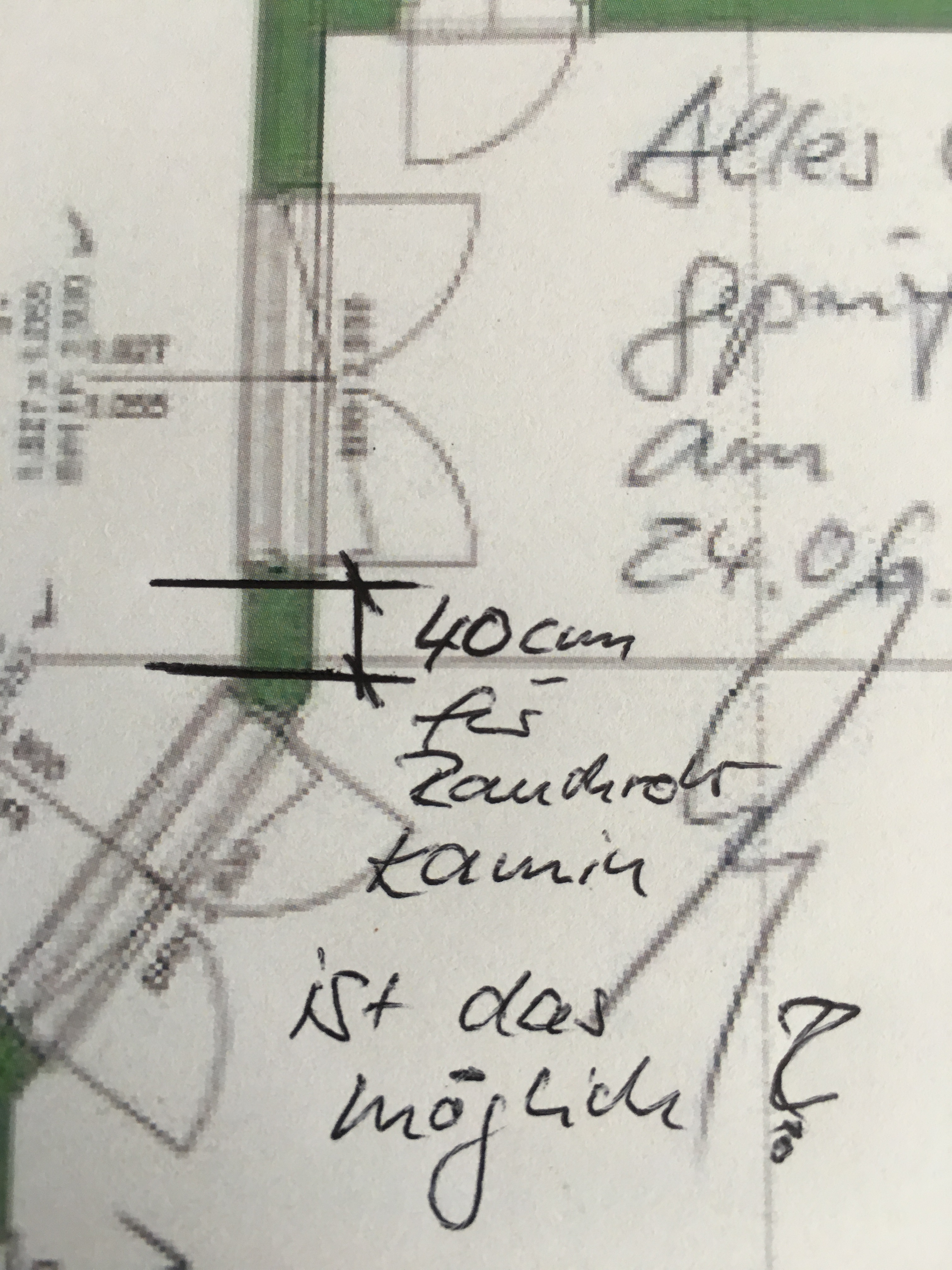 Auch der Kaminbauer ist informiert und um ein neues Angebot gebeten geworden…eine Wanddurchführung von 39 cm fand keinen Platz mehr zwischen dem Festpfosten und der Türe..OK nun ist es so…ein neuer Standort…ist gefunden.