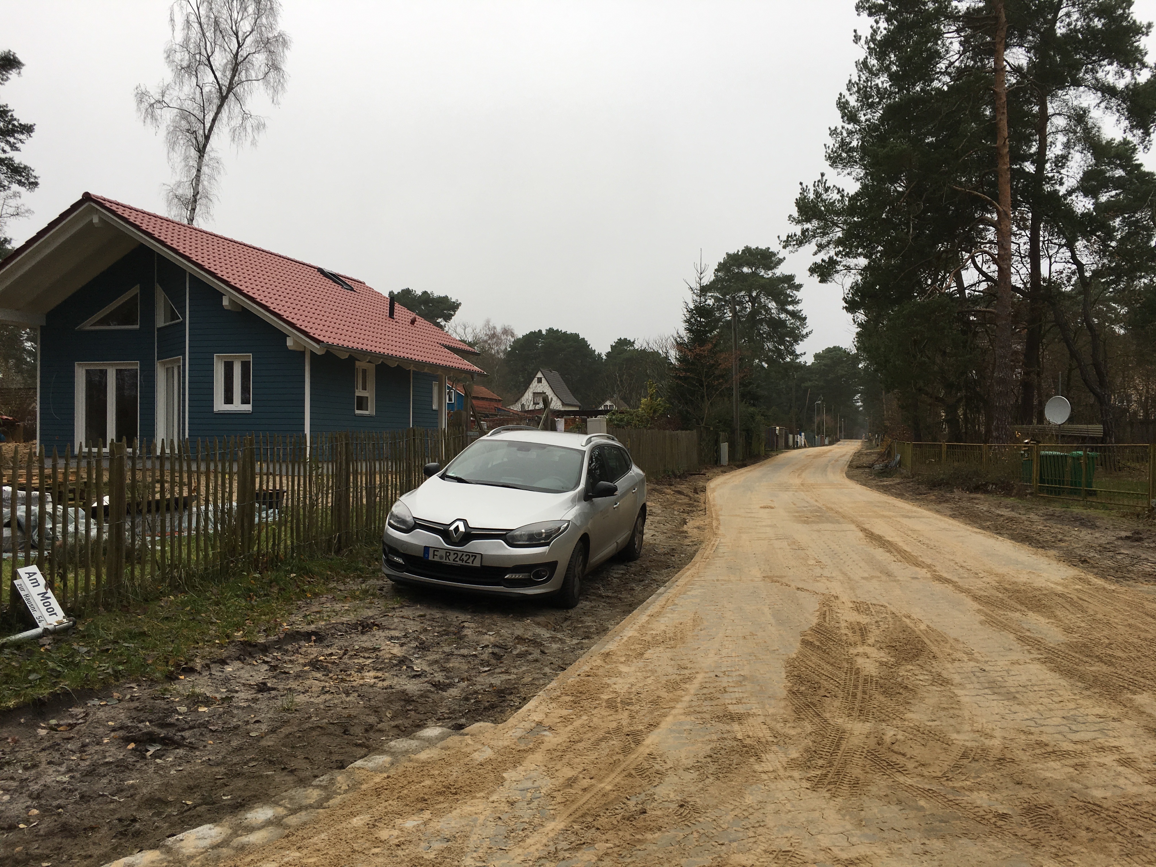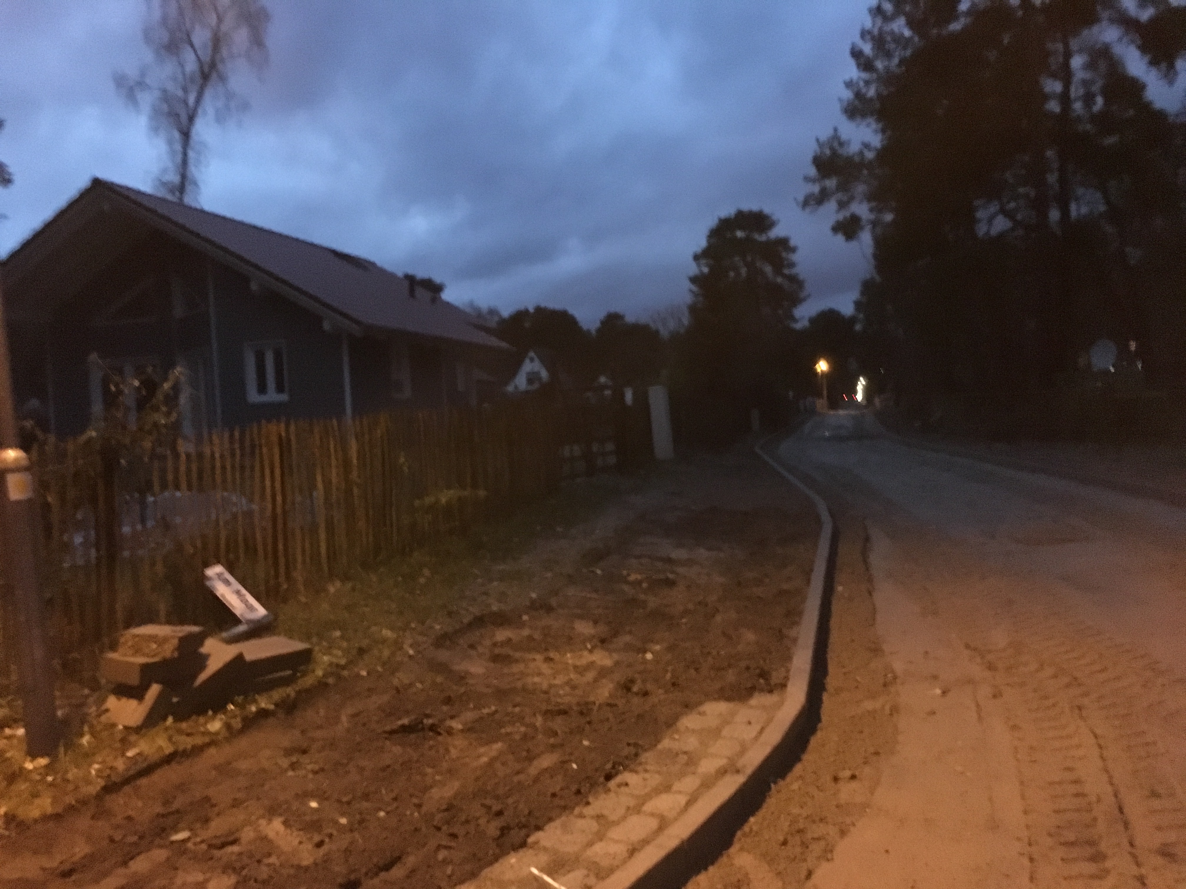 2016 – 11- 18-26 Der Straßenbau schreitet voran…nun sind trotz des schlechten Wetters die Bordsteine in der Straße fertig und Alles gepflastert.