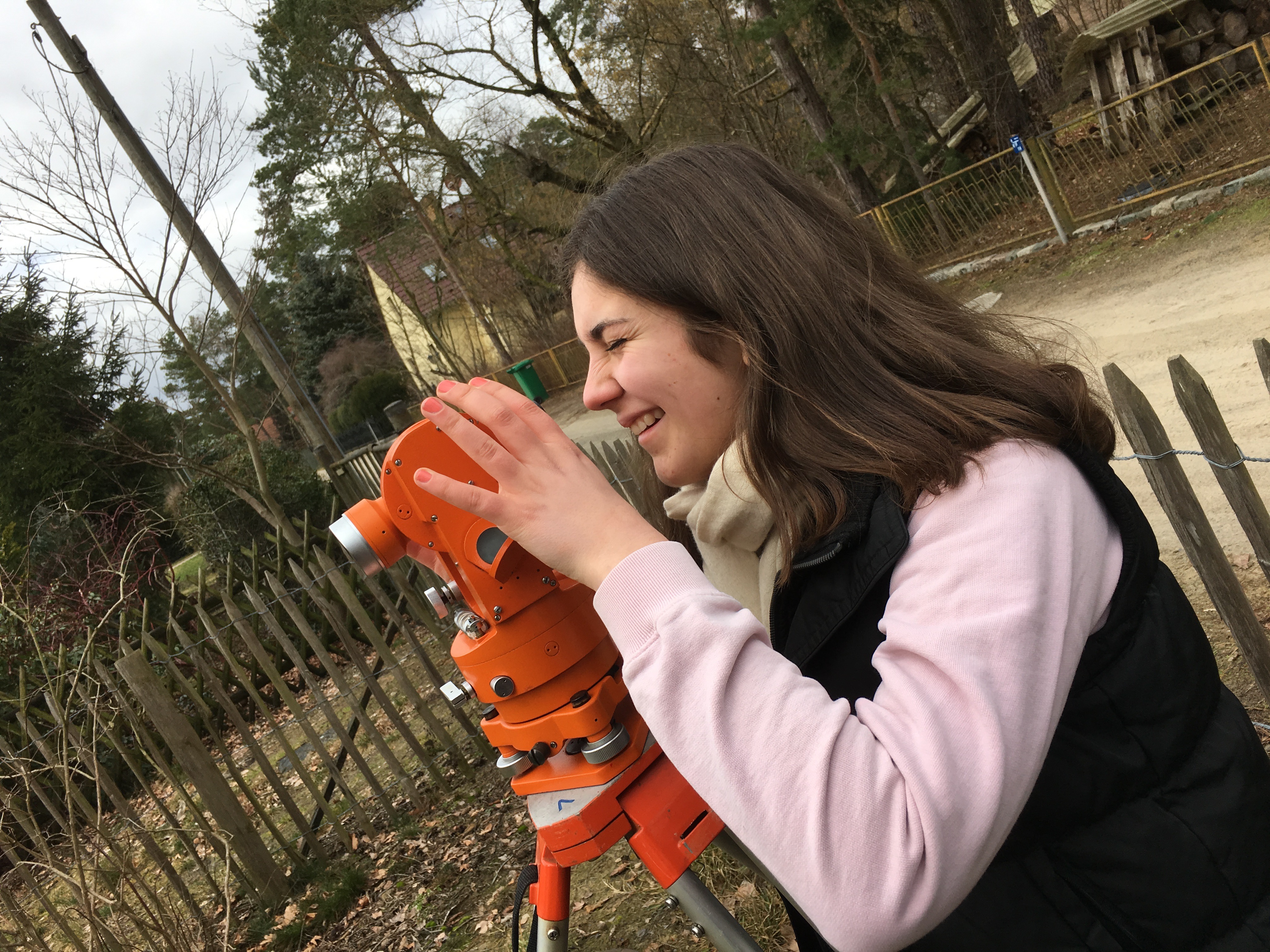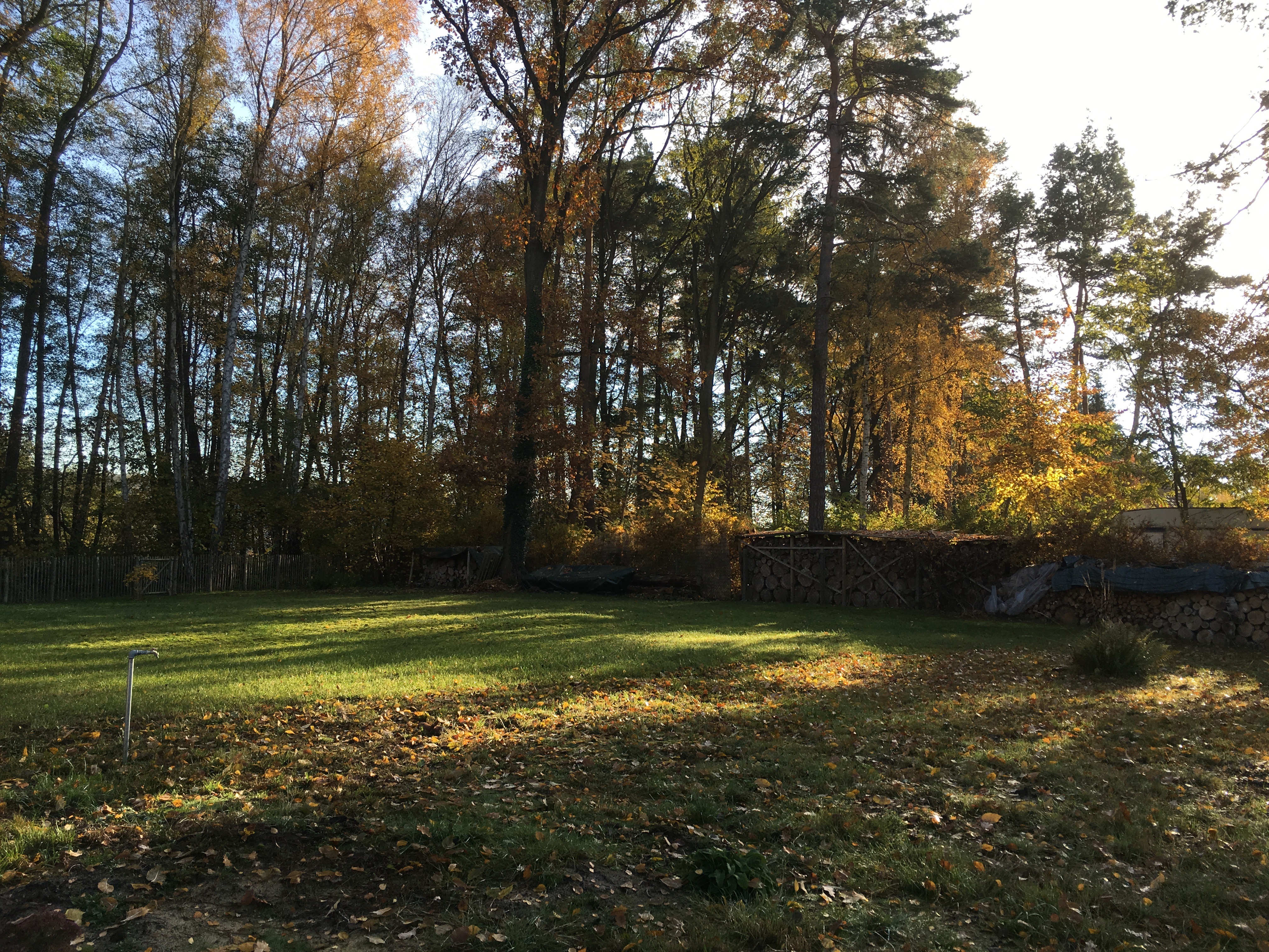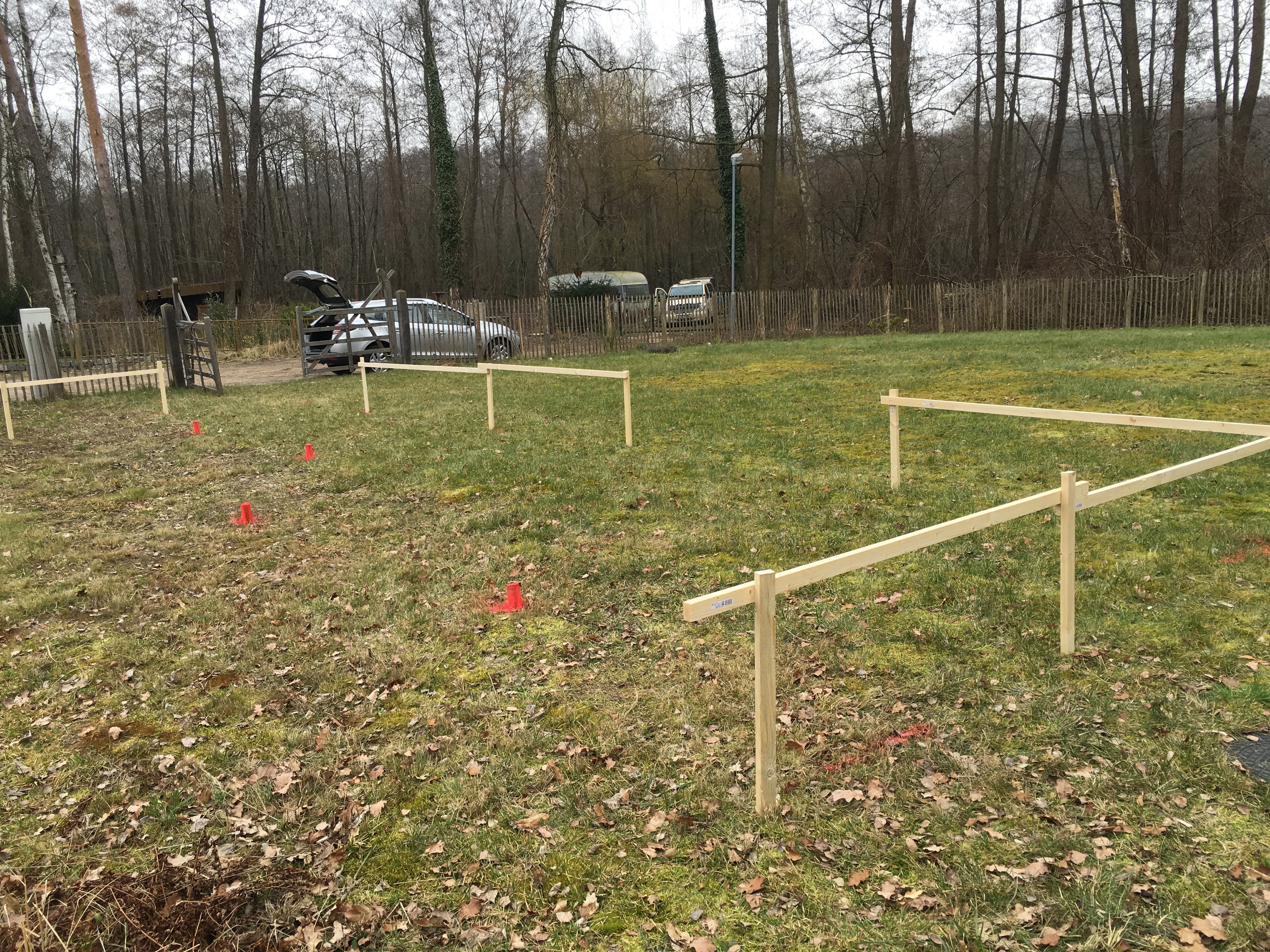 2016 – 03 – 05 während ich das Schnürgerüst gebastelt habe, hat Maija den Rasen vom alten Laub befreit
