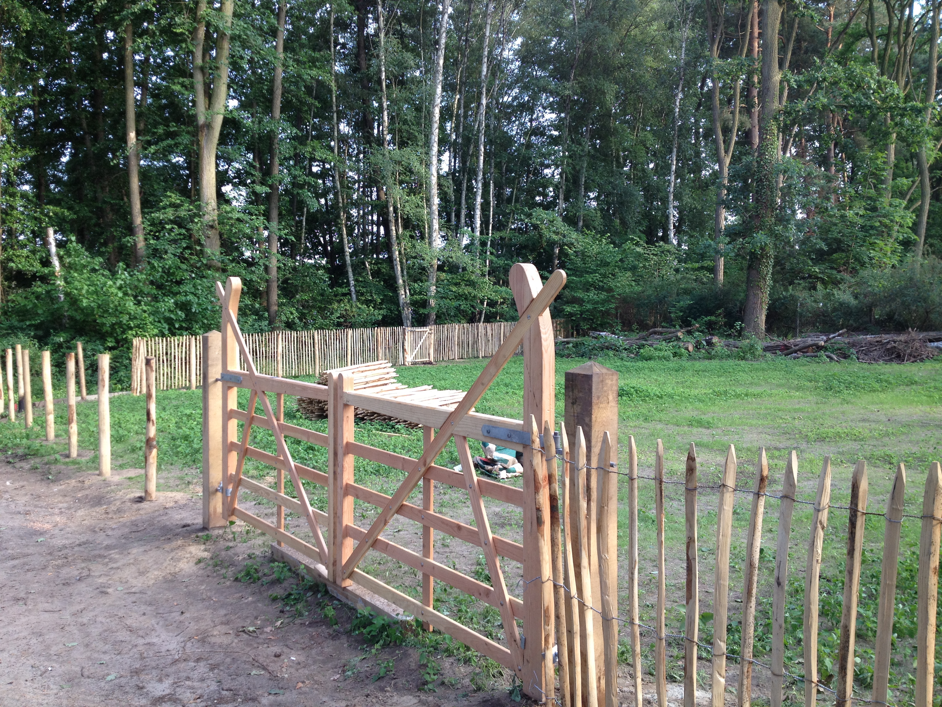 2012 – 06 -18 Jörg Leppin mit seinen Helferchen, hat den Staketenzaun (der aus NL-kam) in Empfang genommen und auch aufgebaut….solch einen Zaun hat in dieser Gegend noch Niemand zuvor gesehen, was zur Frage führte….“Wann kommen die Tiere“?