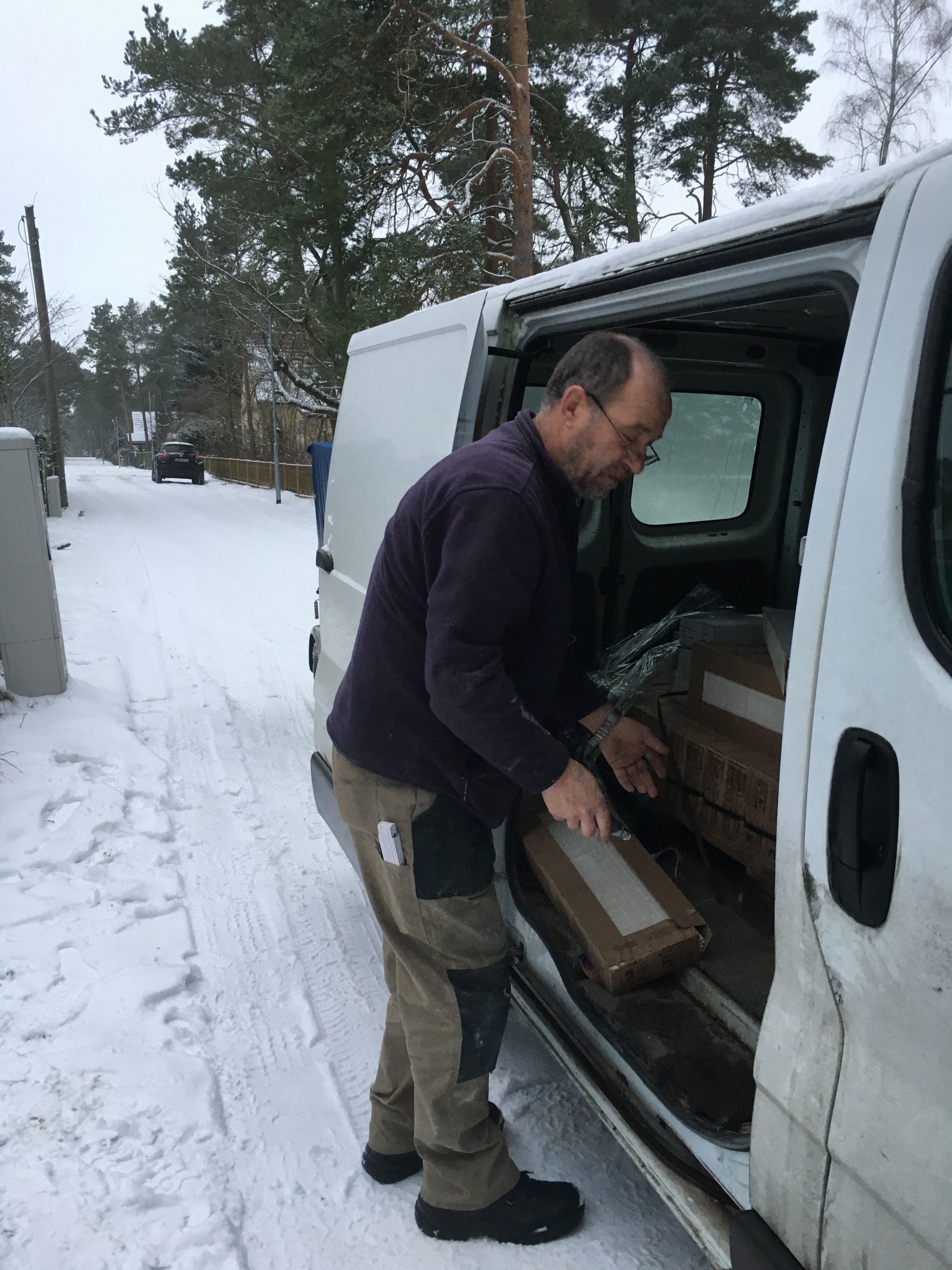 Der Fliesenleger Kalkstein ist da :-)…Treffzeit 8:00 Uhr Bestensee…um 8:05 Uhr kam Herr Kalkstein mit seinem Gespann….wir haben wie folgt besprochen…Höhe Badfliesen wie Fensteroberkante 1,65 cm….und dann bin ich gleich ins Büro gefahren…